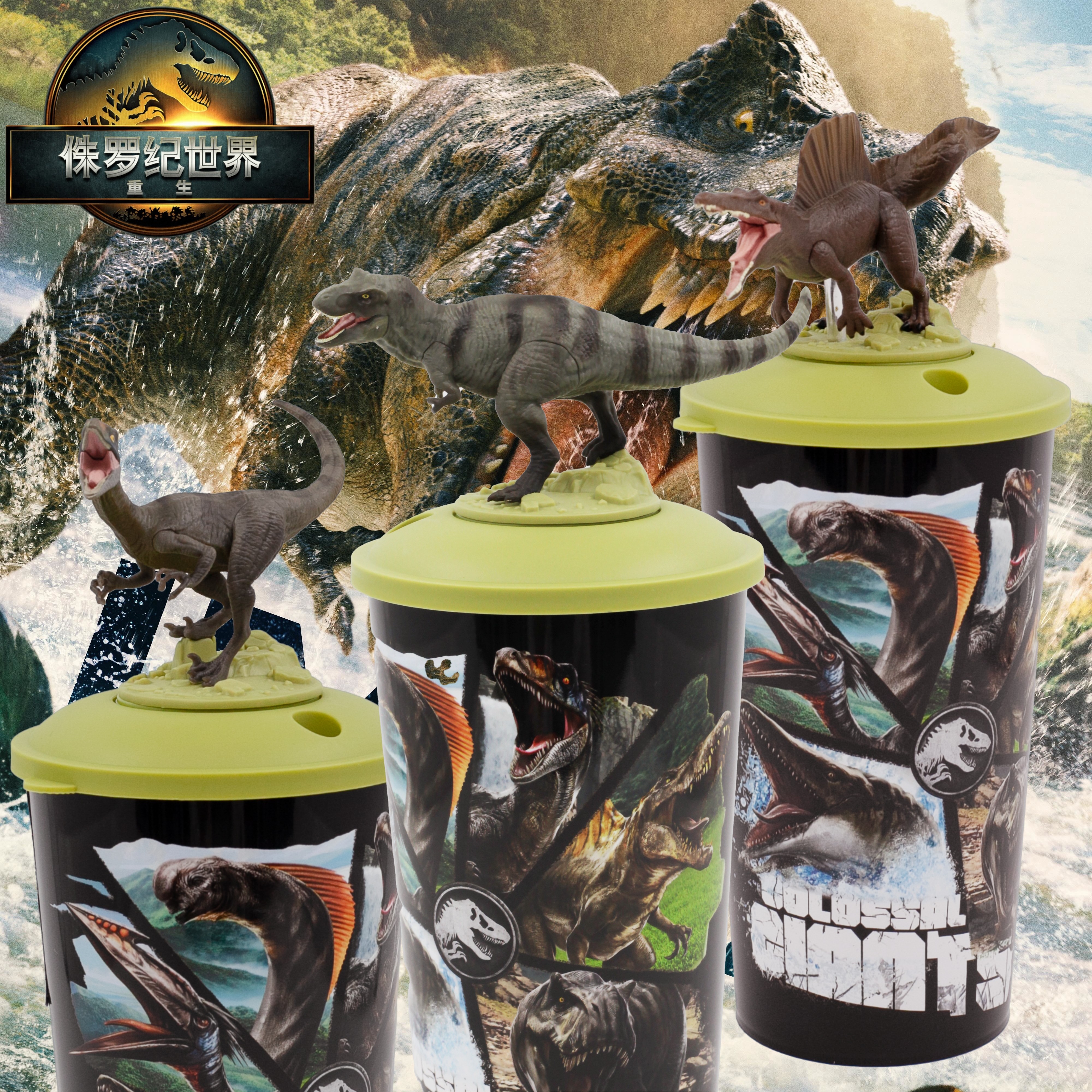 环球正品侏罗纪世界重生霸王龙棘龙迅猛龙玩偶杯吸管杯水杯周边