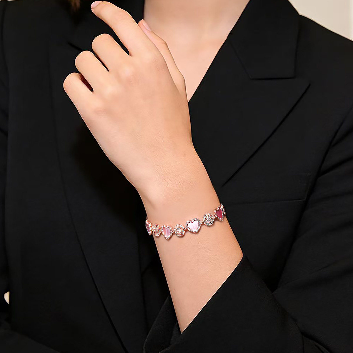粉母贝心相连手链调节爱心手饰