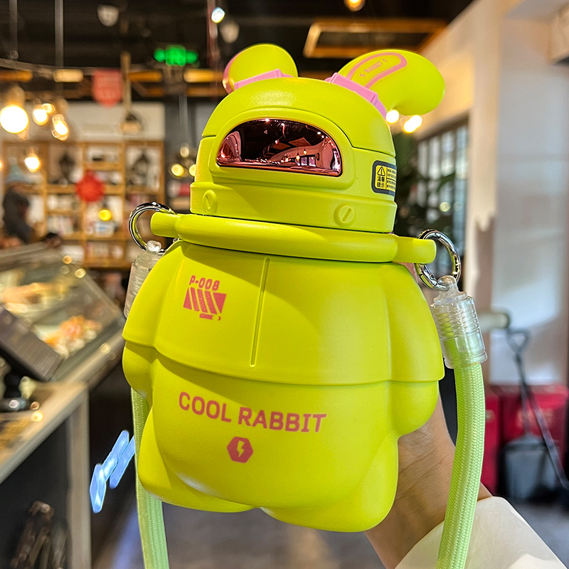 太空兔保温杯女生新款2025高颜值潮玩吸管杯儿童水壶创意水杯学生