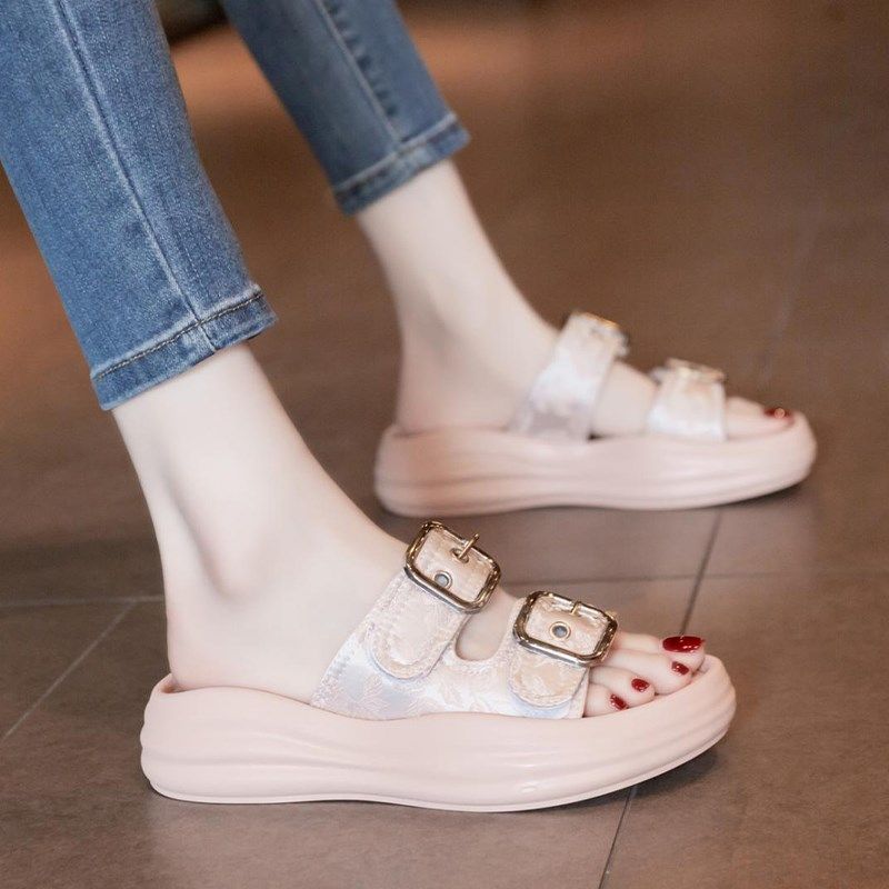 凉拖鞋女夏外穿2025新款高级感外出厚底沙滩凉鞋懒人孕妇一字拖鞋