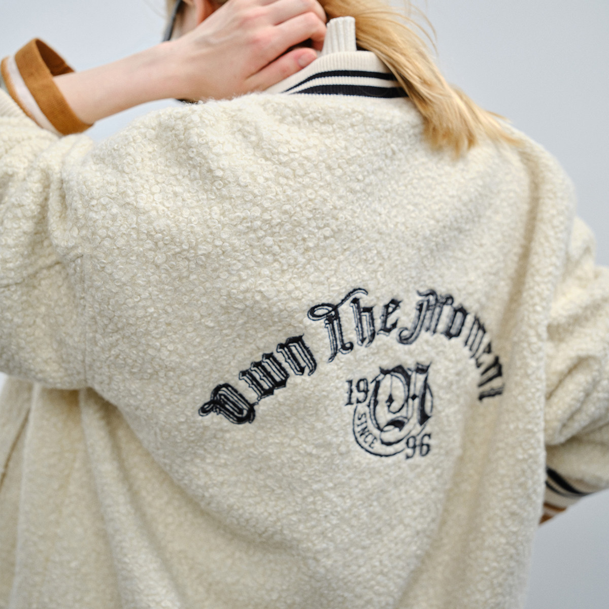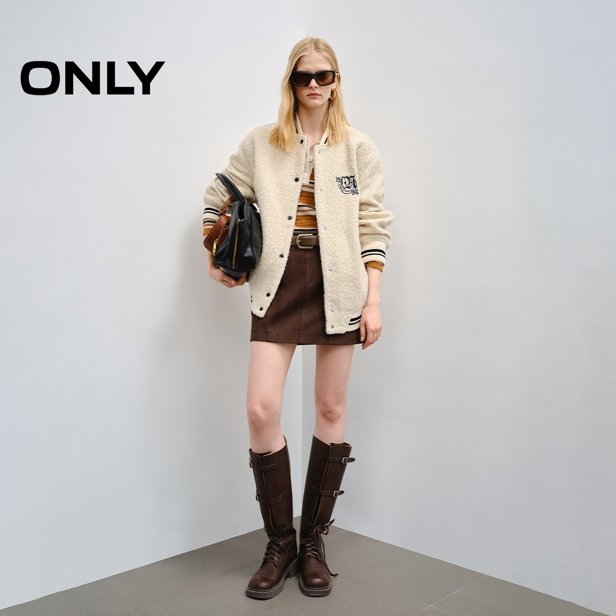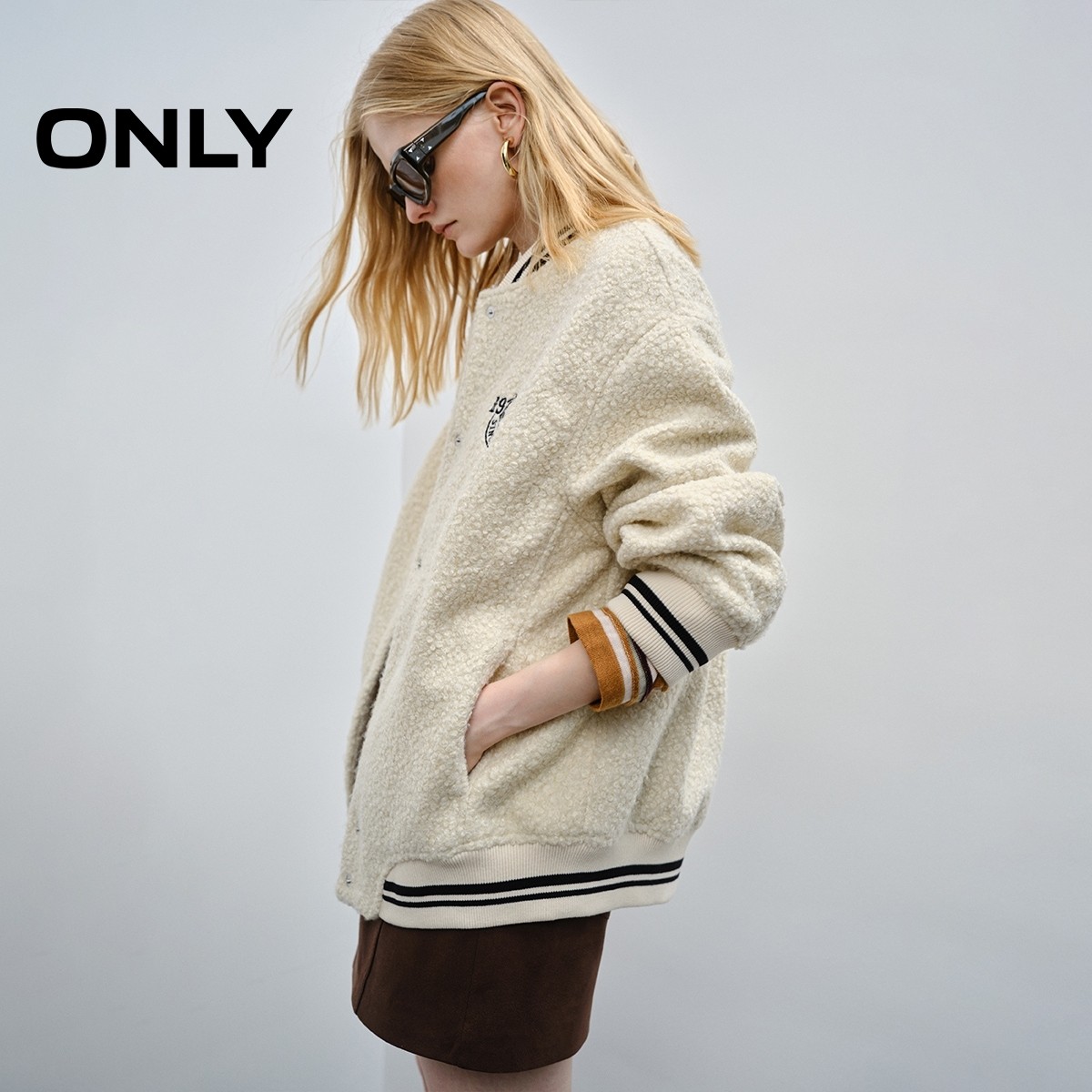 绫致ONLY2025秋冬新款潮流口袋字母刺绣棒球领撞色棉服女