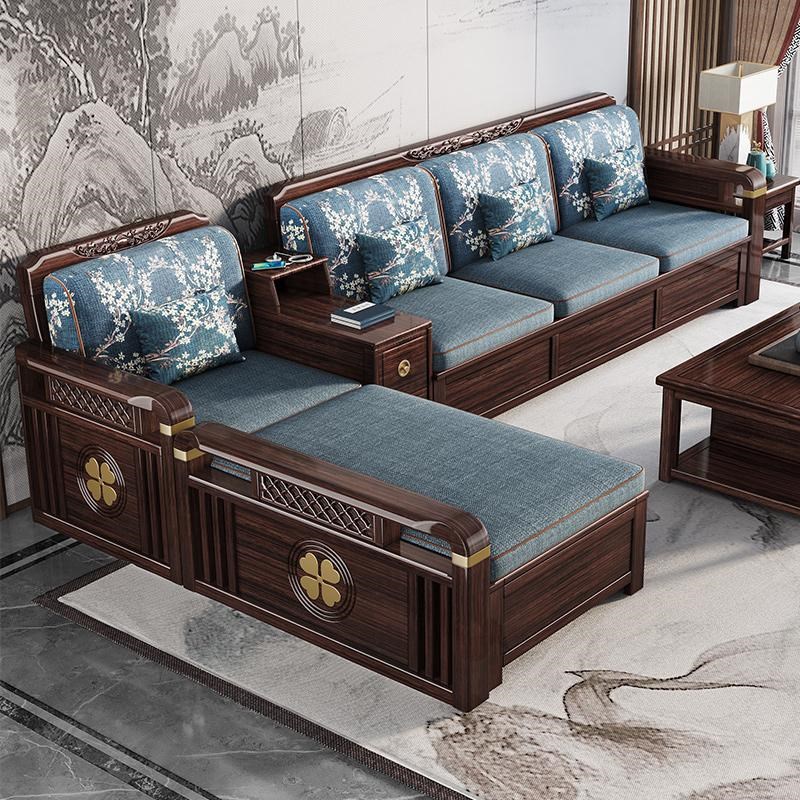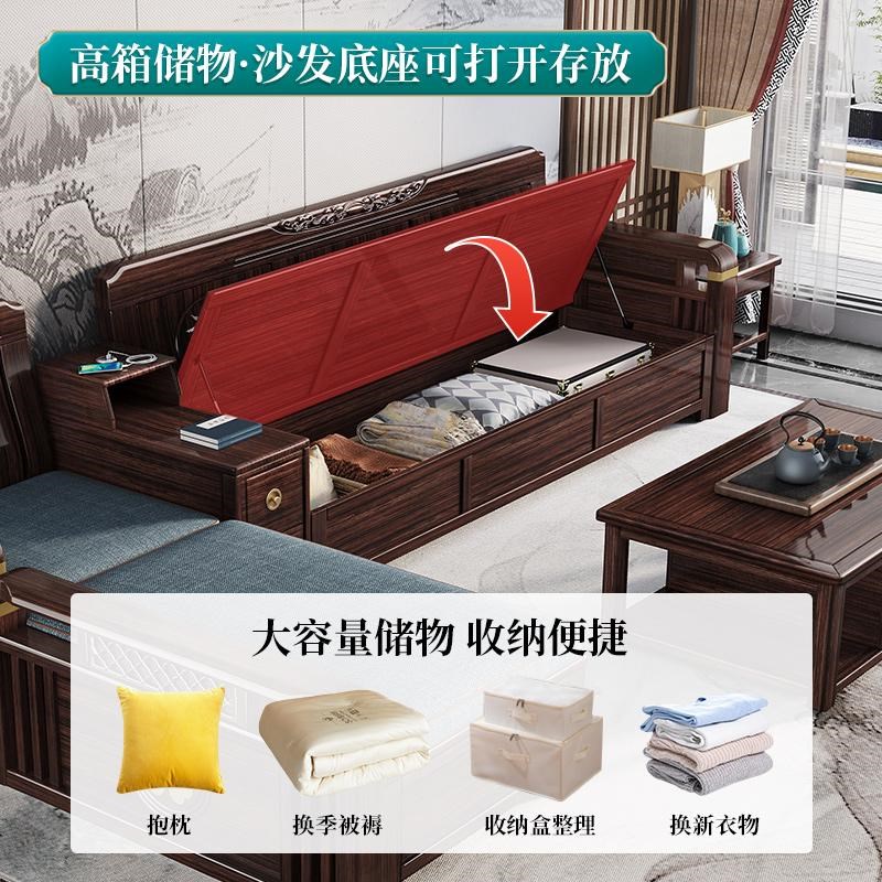 新中式实木沙发组合小户型客厅紫金檀木冬夏两用转角贵妃储物家具