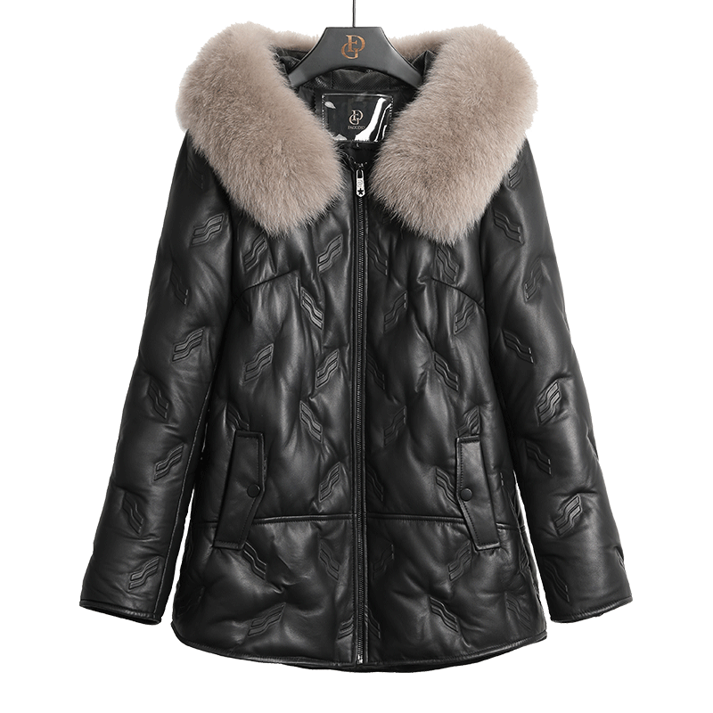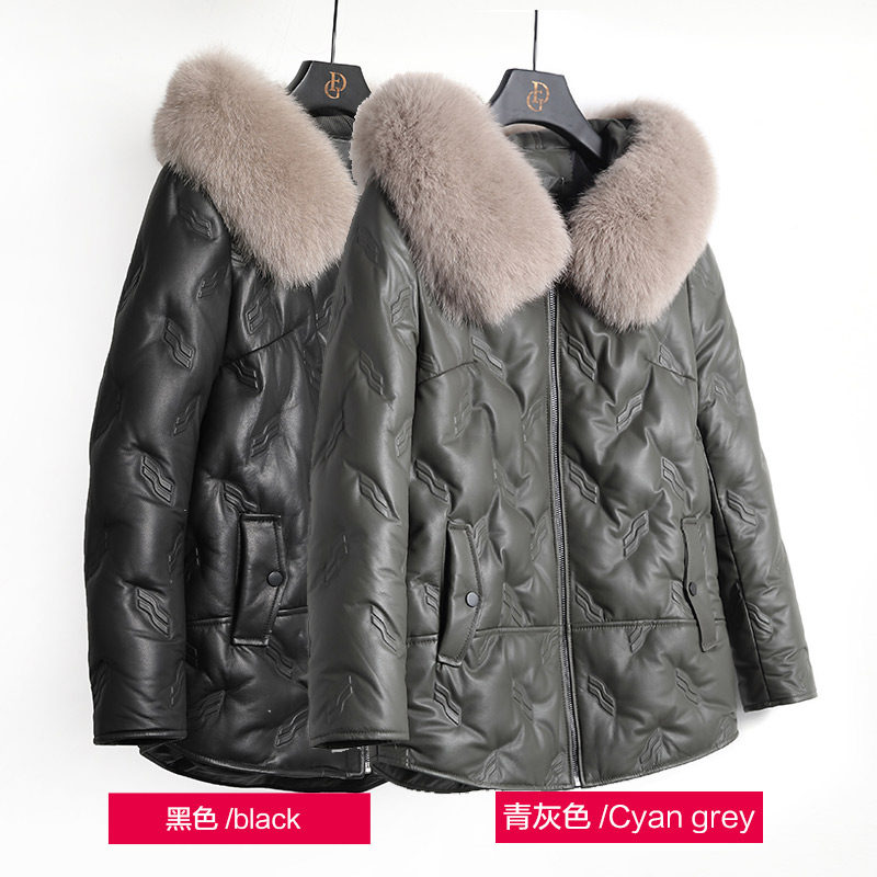 海宁真皮羽绒服女士中长款2022冬新款绵羊皮衣狐狸毛领妈妈装外套