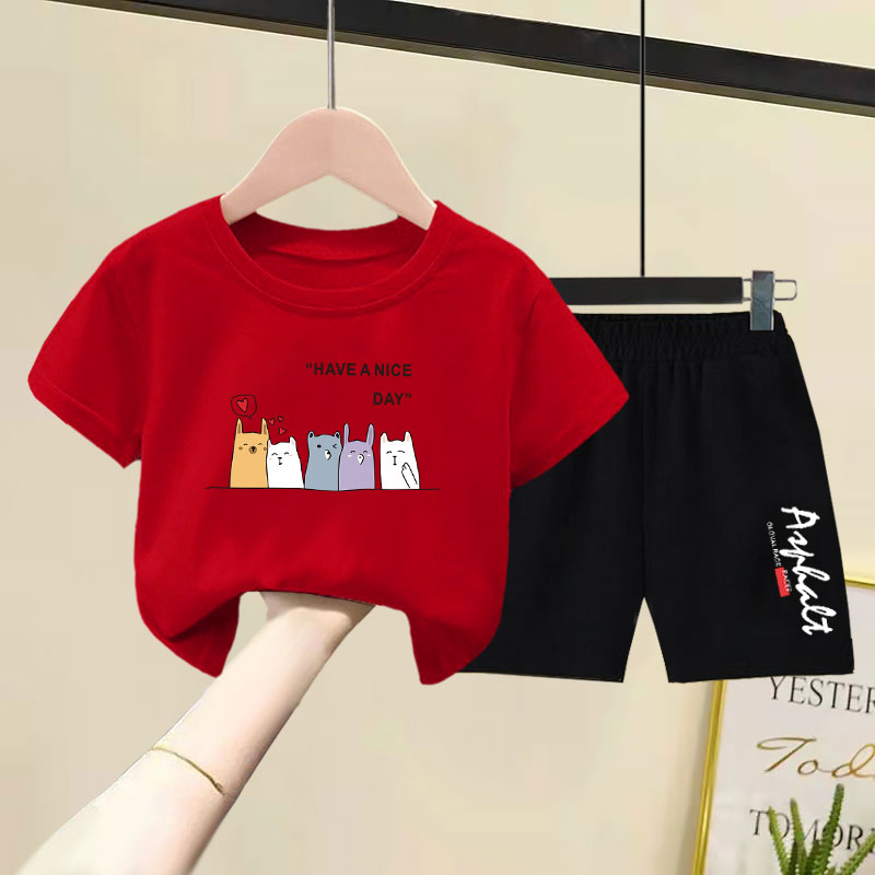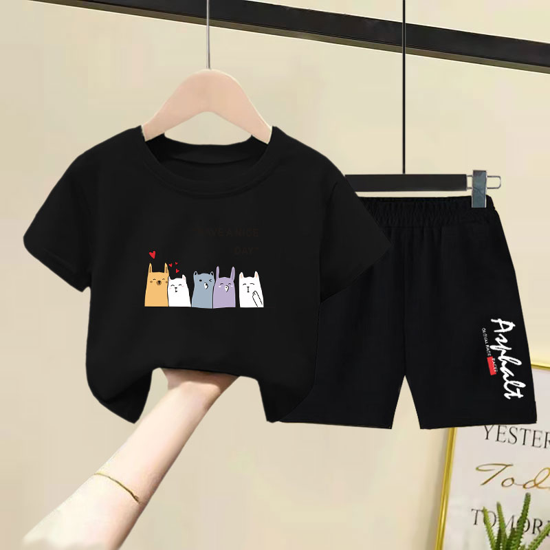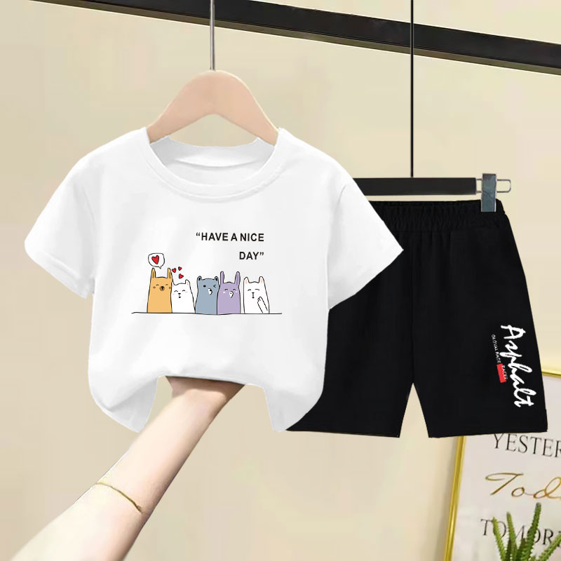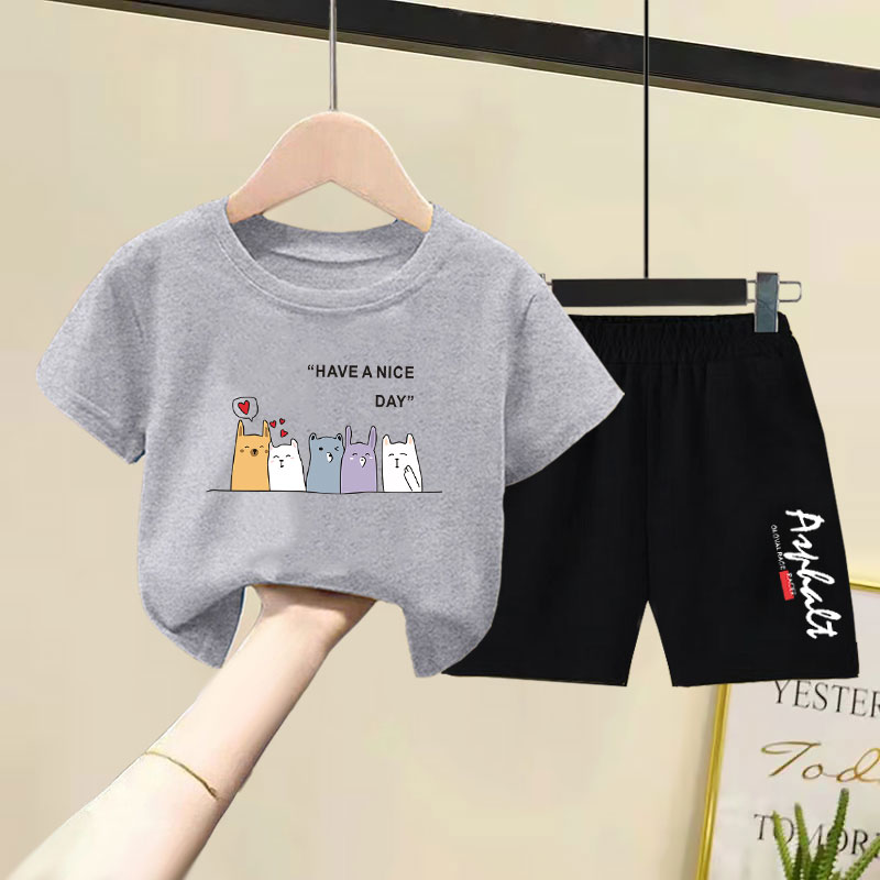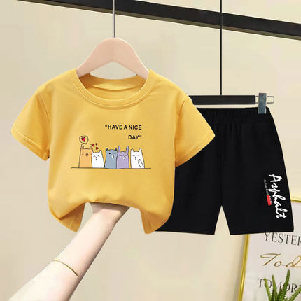 儿童纯棉短袖短裤套装2025夏装新款洋气韩版男女童宽松薄款两件套