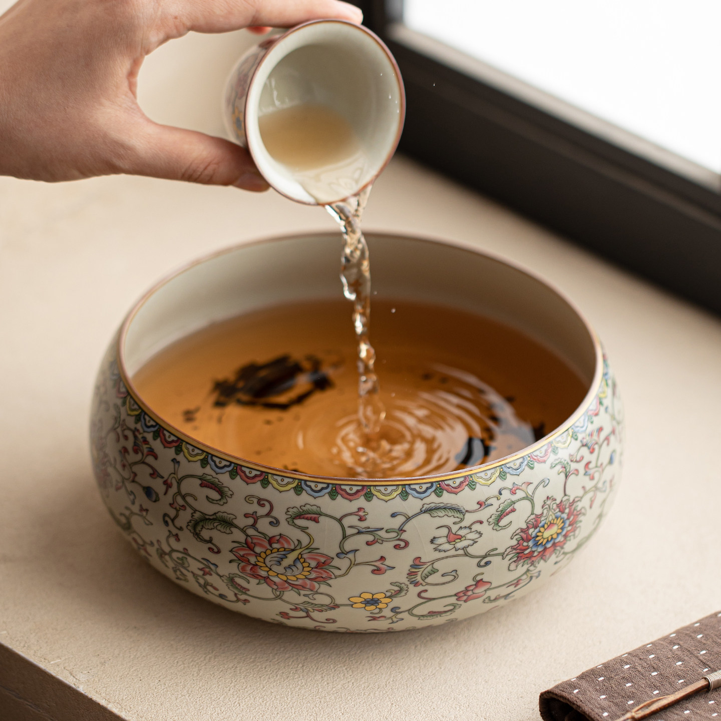 青花汝窑陶瓷大号茶洗杯洗家用茶渣缸水盂茶道零配建水功夫茶具