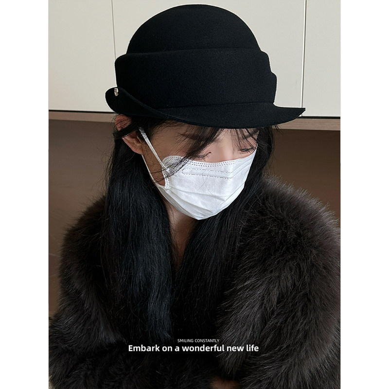 法式高级感富家千全纯羊毛卷边礼帽女冬季新款气质优雅百搭渔夫帽