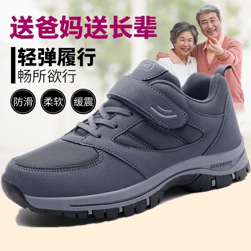 老人鞋男旗舰正品中老年人春秋款健步鞋爸爸加宽加肥运动防滑软底