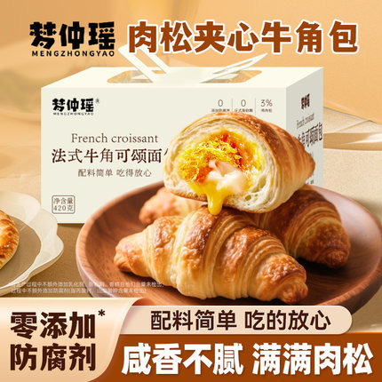梦仲瑶零添加防腐剂肉松可颂牛角包儿童营养健康早餐糕点心零食品