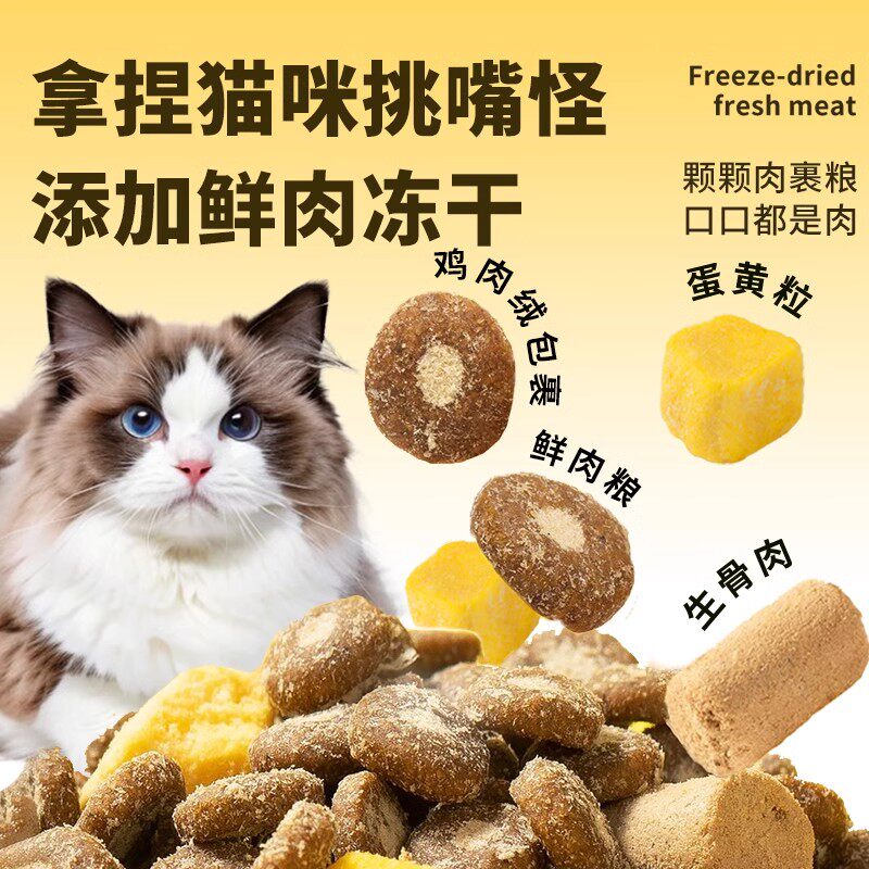 芭芘狗猫粮5斤实惠装成猫幼猫全价冻干鸡肉绒夹心营养乳鸽1斤试吃