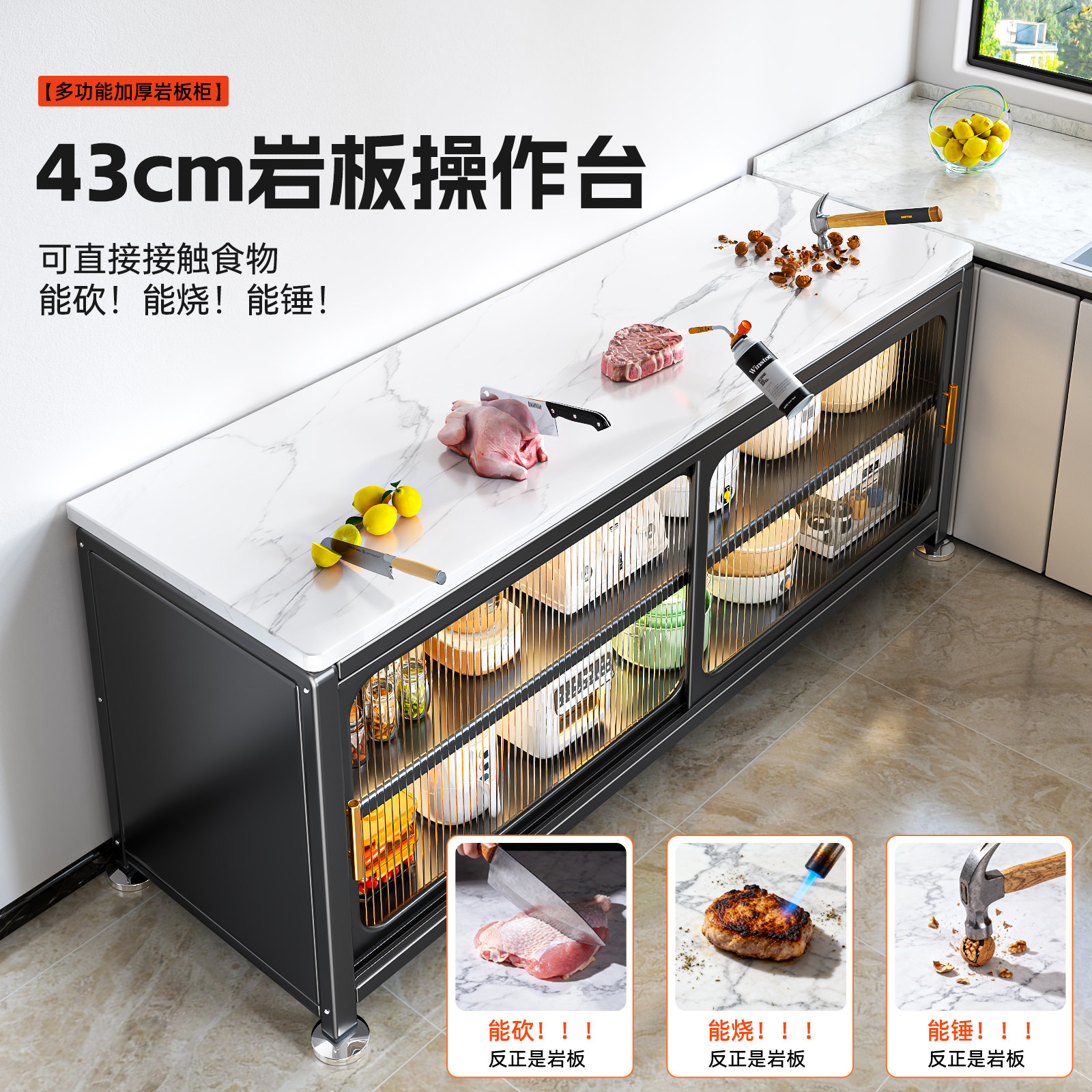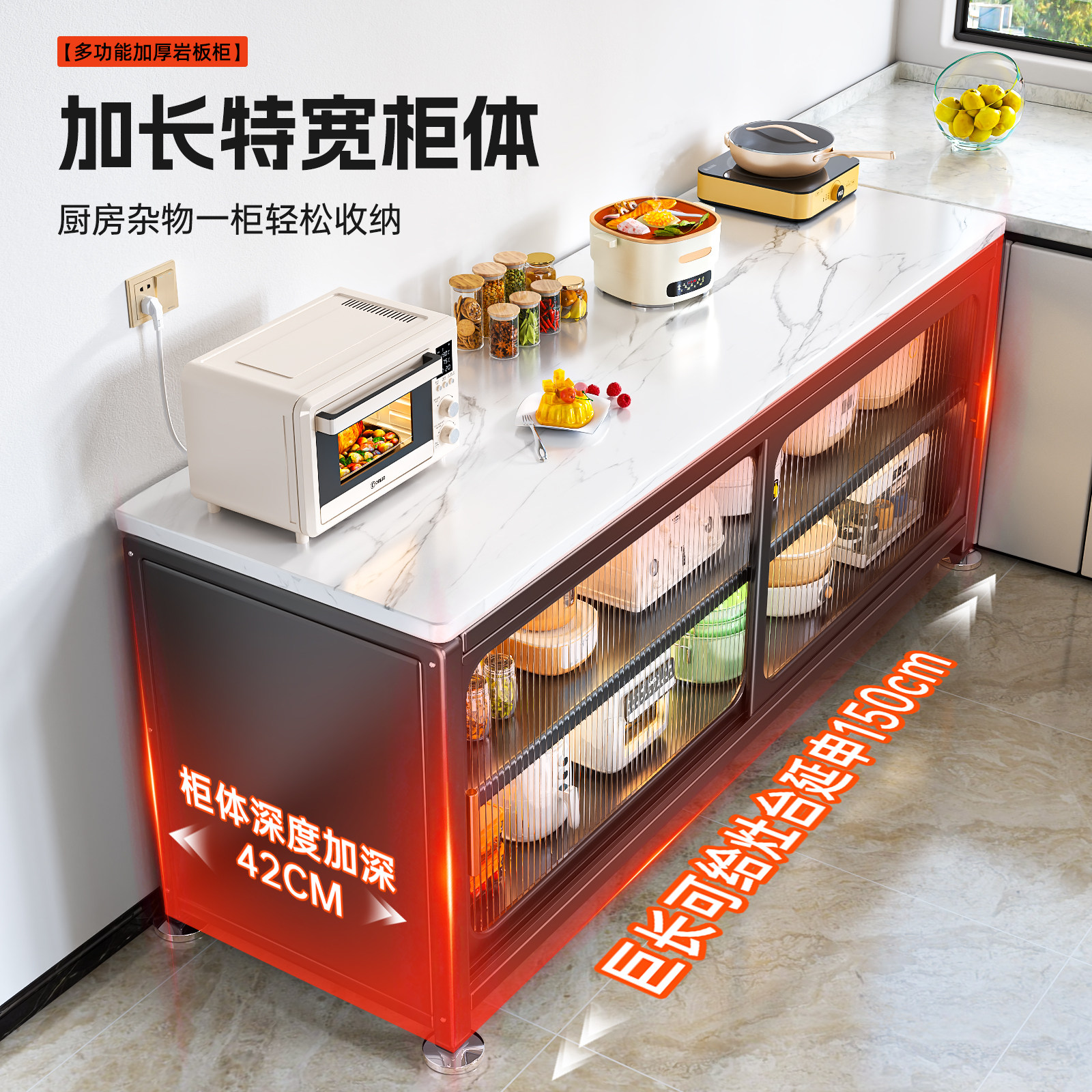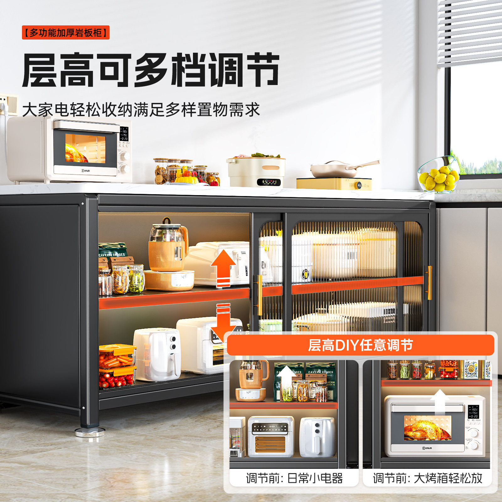 家用厨房置物架多功能落地岩板餐边收纳柜多层储物微波炉碗柜橱柜
