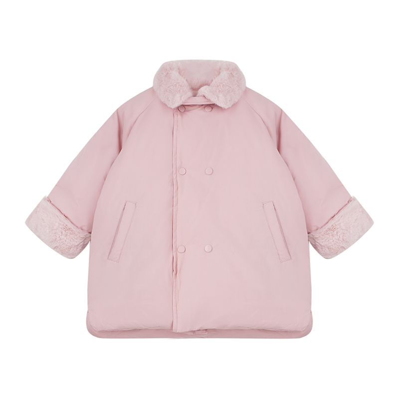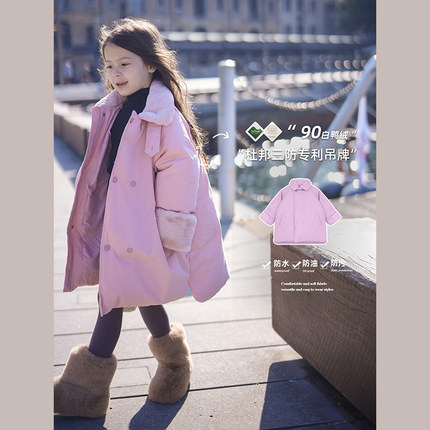 史豌豆童装女童羽绒服2023秋冬新款90白鸭绒儿童粉色长款保暖外套