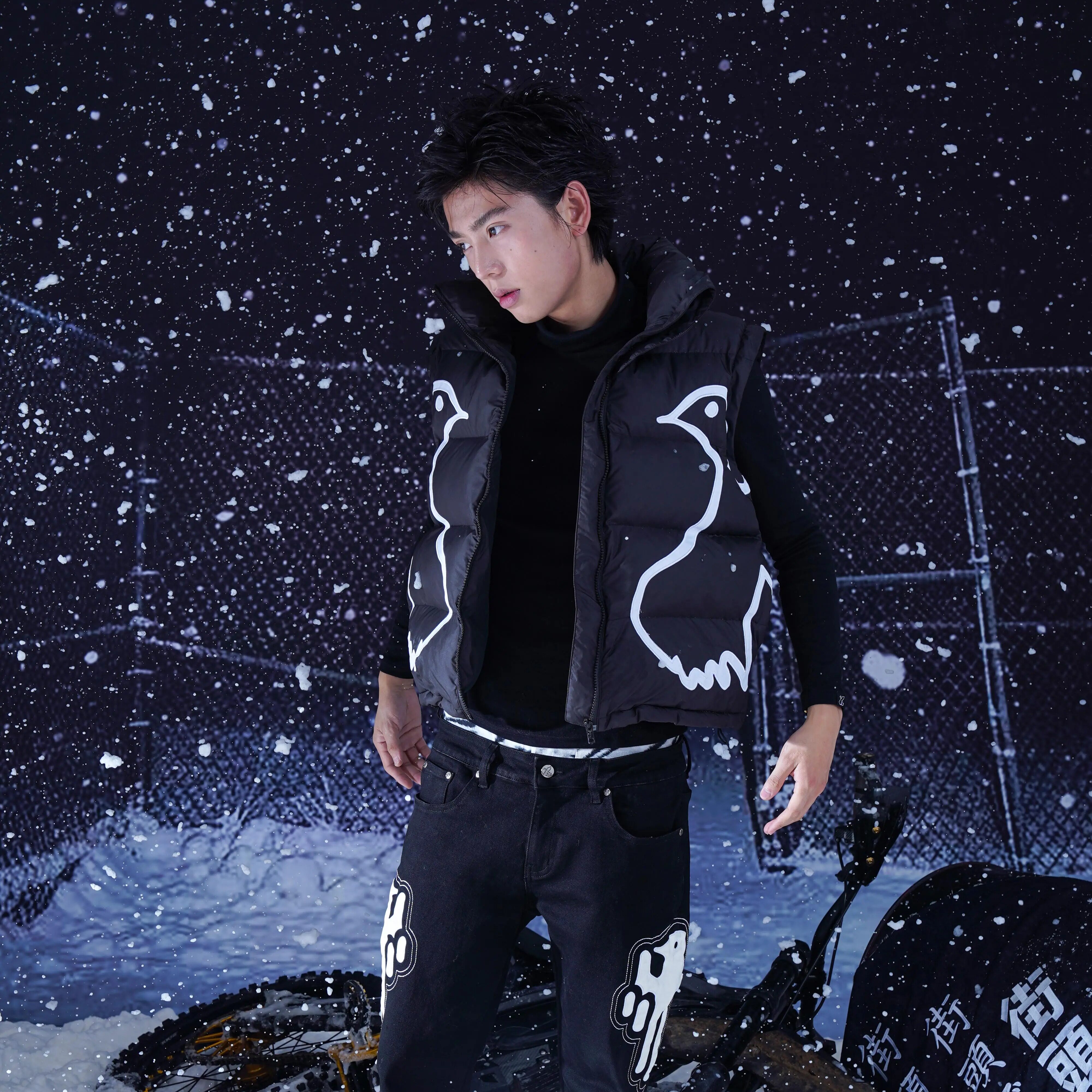 Vinkid(云梯)双鸽子棉马甲 秋冬美式潮流日常百搭国潮拉链外套