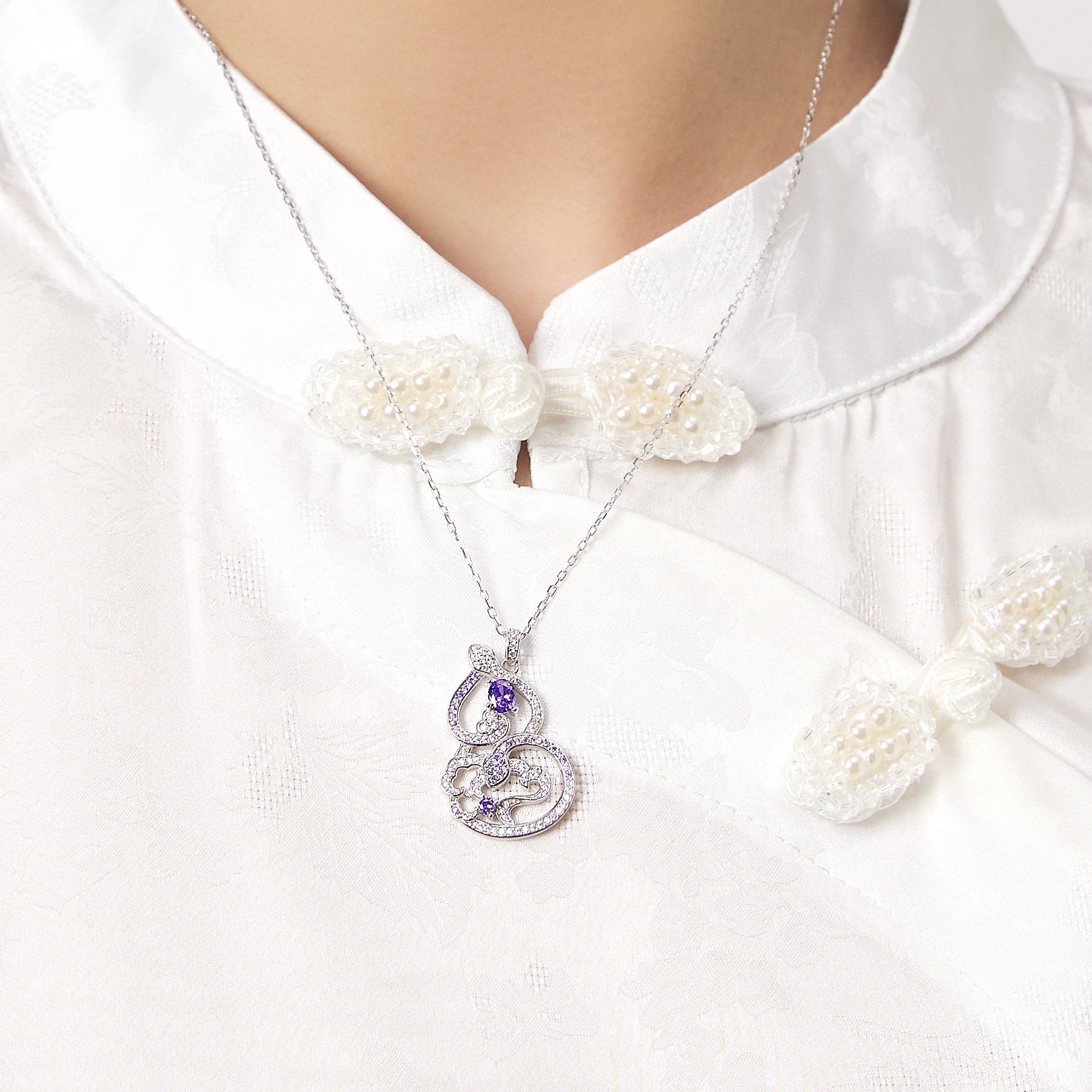 伊得贵 福禄系列 天然紫水晶双蛇护身福禄女士项链