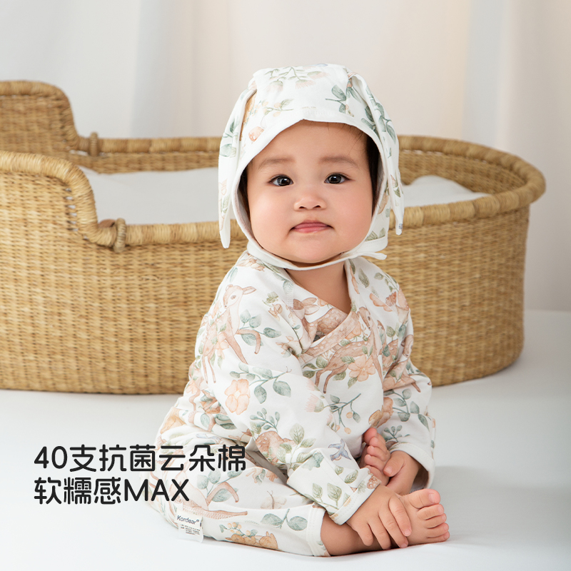 Kordear新生儿纯棉连体衣春秋款宝宝和尚服哈衣春装婴儿系带衣服