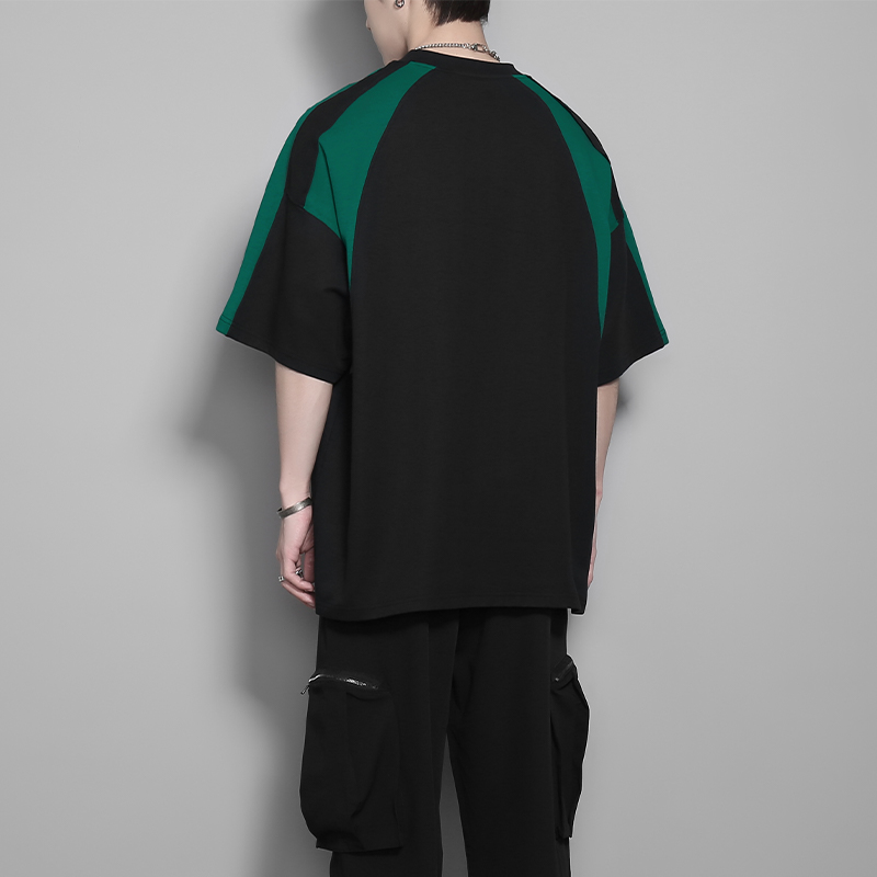 撞色拼接设计感解构宽松短袖t恤