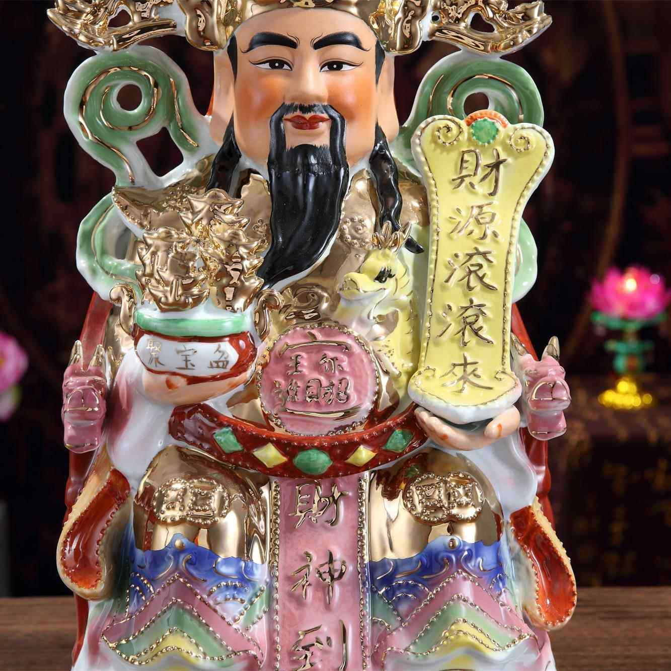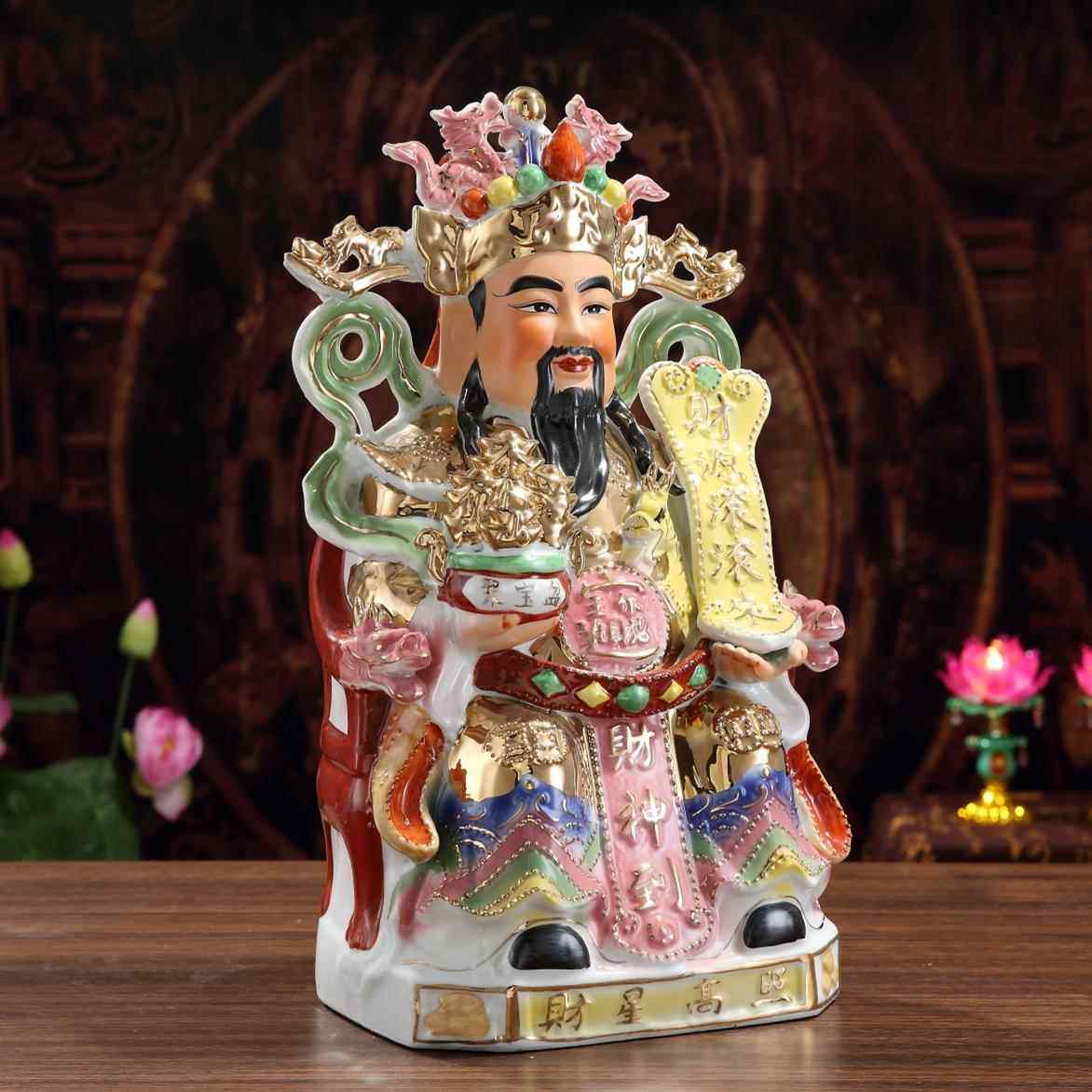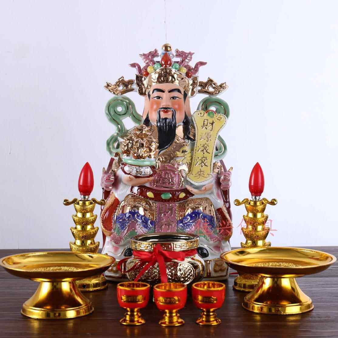 财神爷陶瓷佛像家用店铺文财神爷开业家居摆件套装