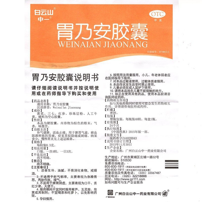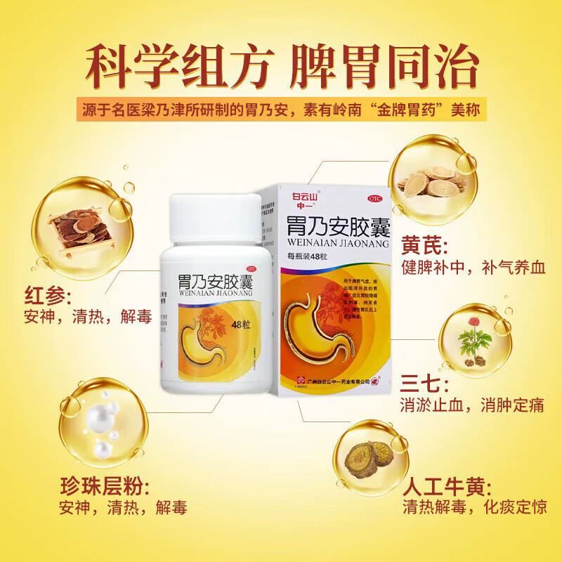 白云山胃乃安胶囊48粒慢性胃炎补气健胃脾胃气虚瘀血阻滞胃痛的药