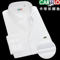 鳄鱼新款男士白色职业装长袖衬衫中青年爸爸商务宽松纯棉免烫寸衣