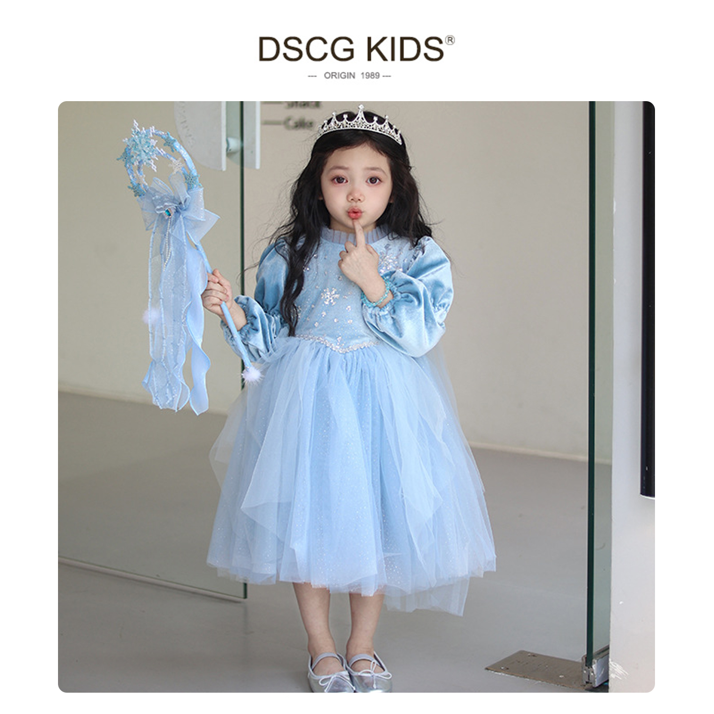 DSCG艾莎公主裙秋冬女童爱莎连衣裙正版万圣节儿童生日礼物纱裙子