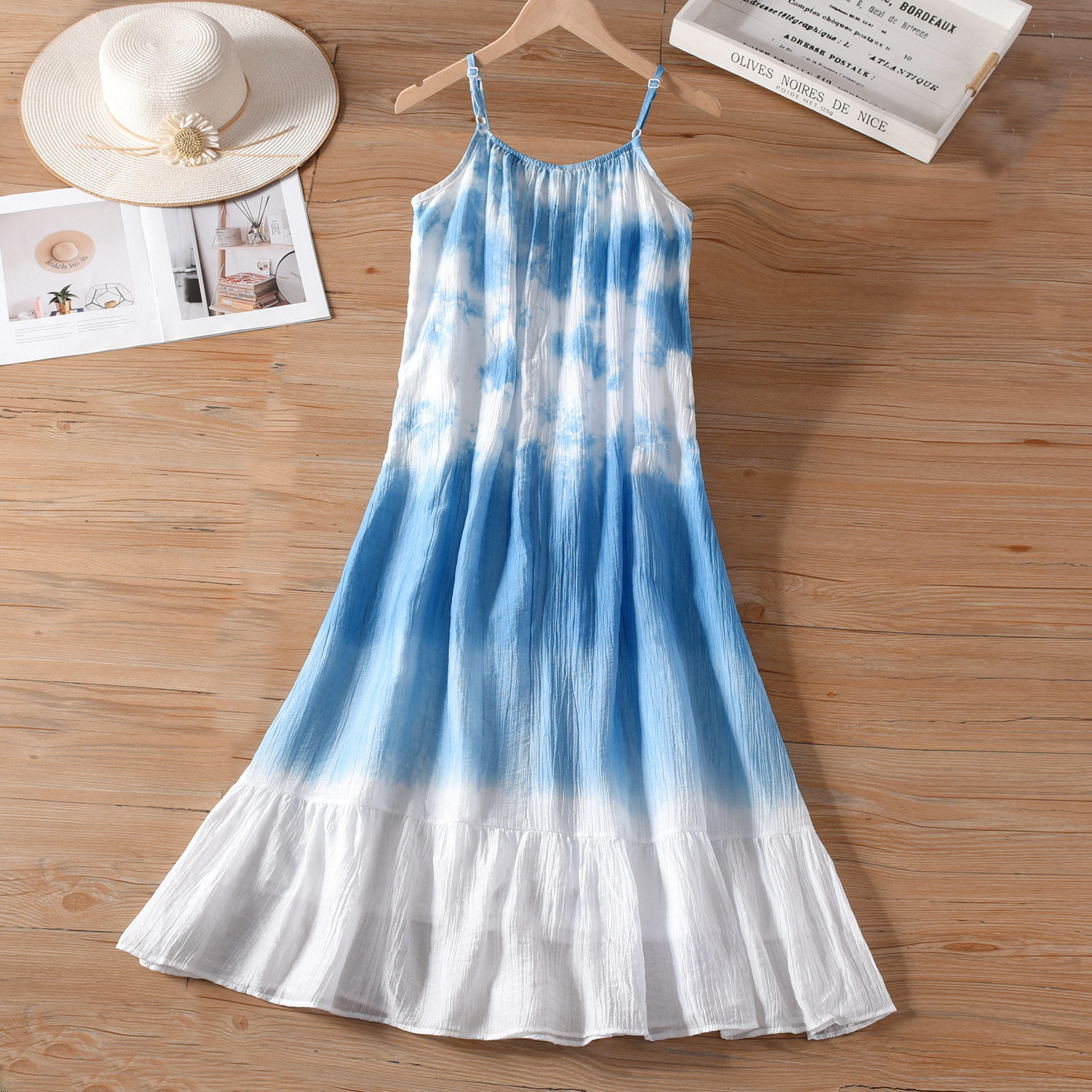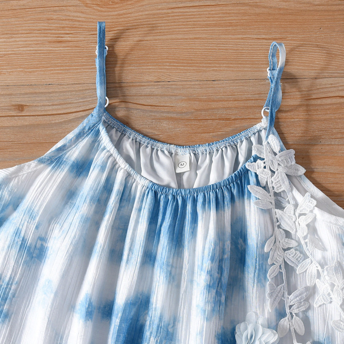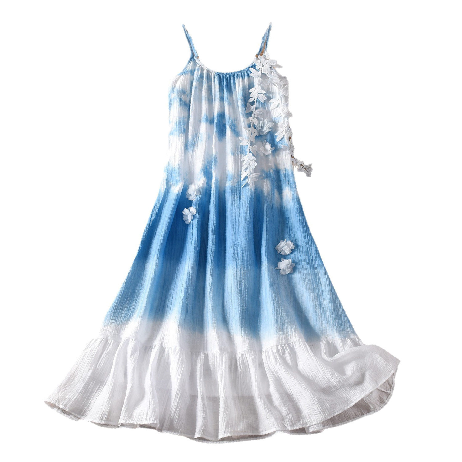 云南大理手工扎染法式立体花朵连衣裙母女亲子装度假风儿童吊带裙