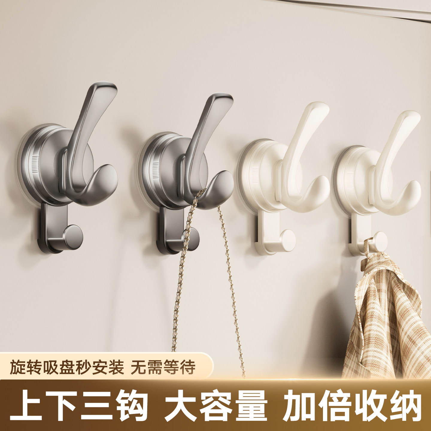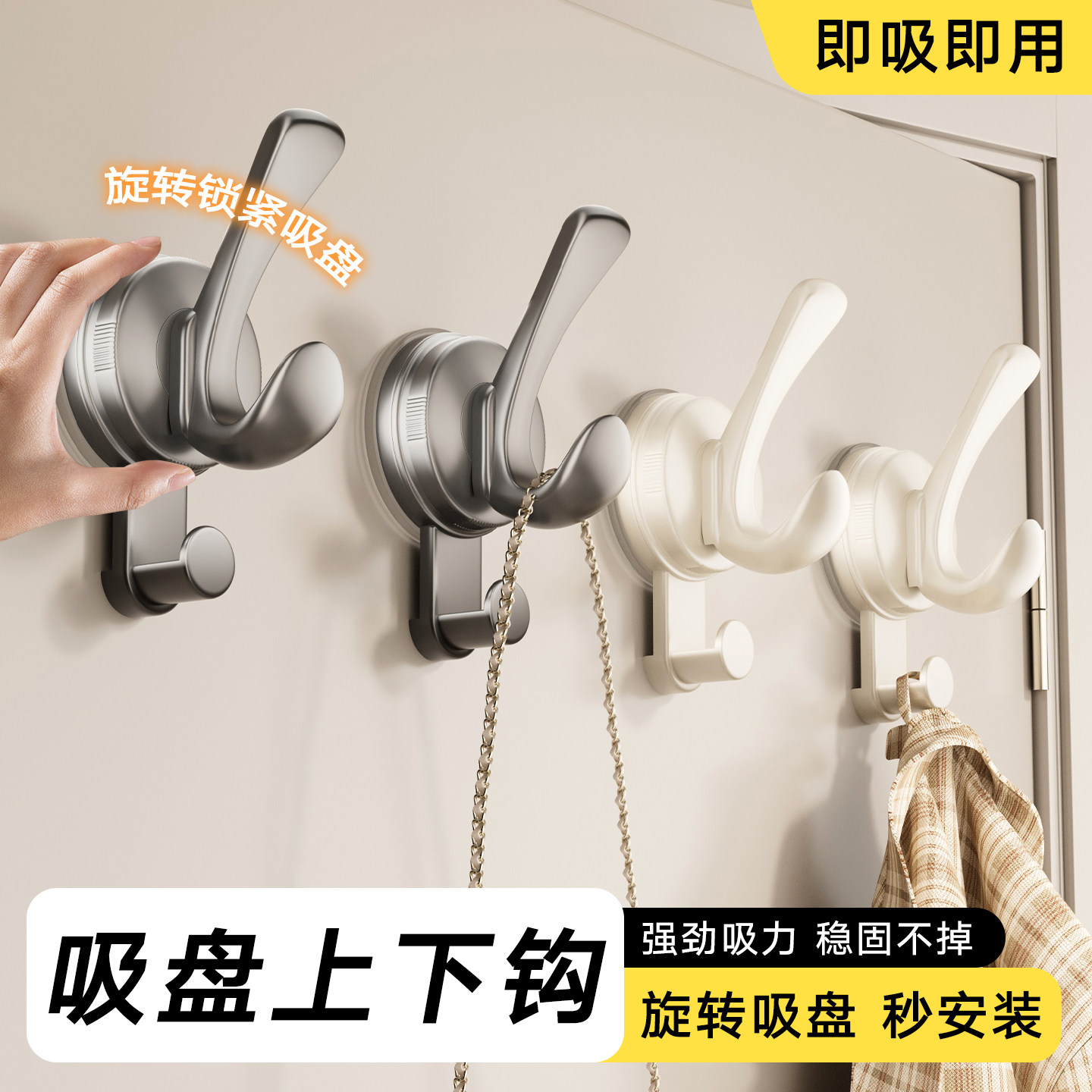 吸盘挂钩免打孔强力承重浴室卫生间门后挂衣钩厨房无痕粘钩衣帽钩