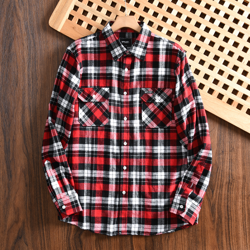软糯磨毛棉休闲格子翻领长袖衬衫