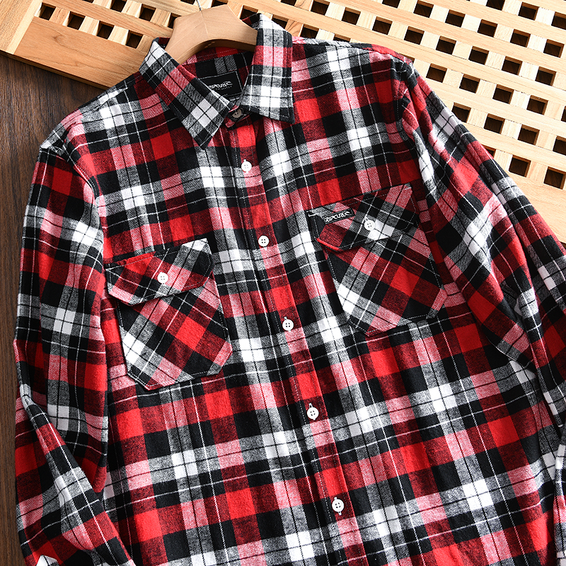 出口单!软糯舒适磨毛棉!外贸尾货秋冬新款休闲复古格子长袖衬衫