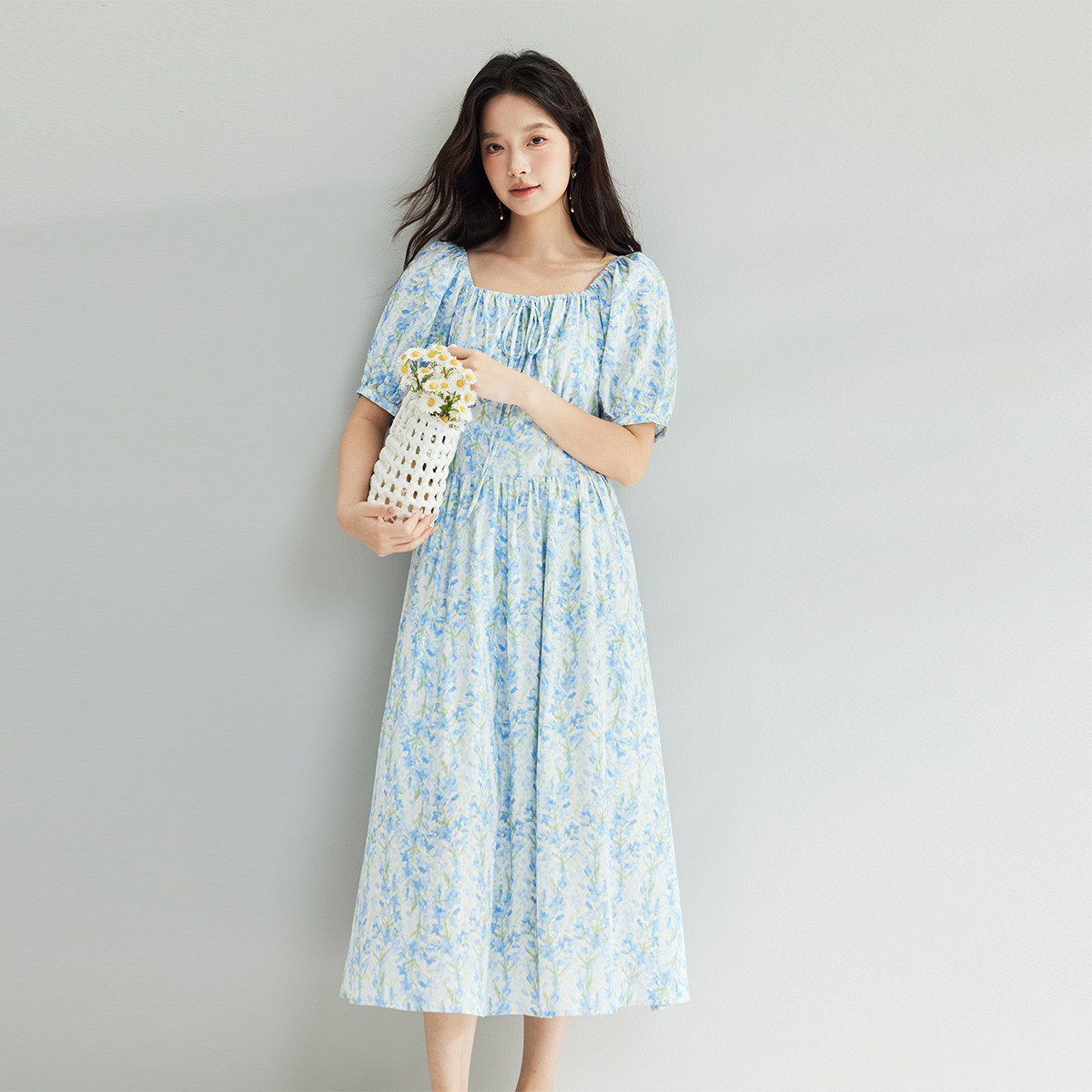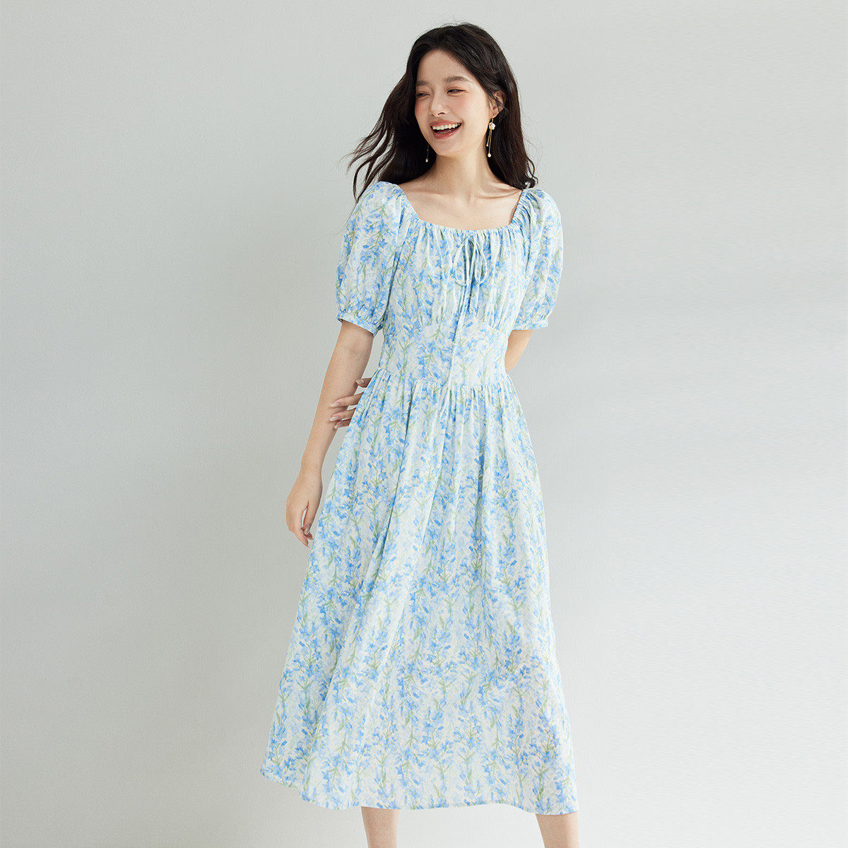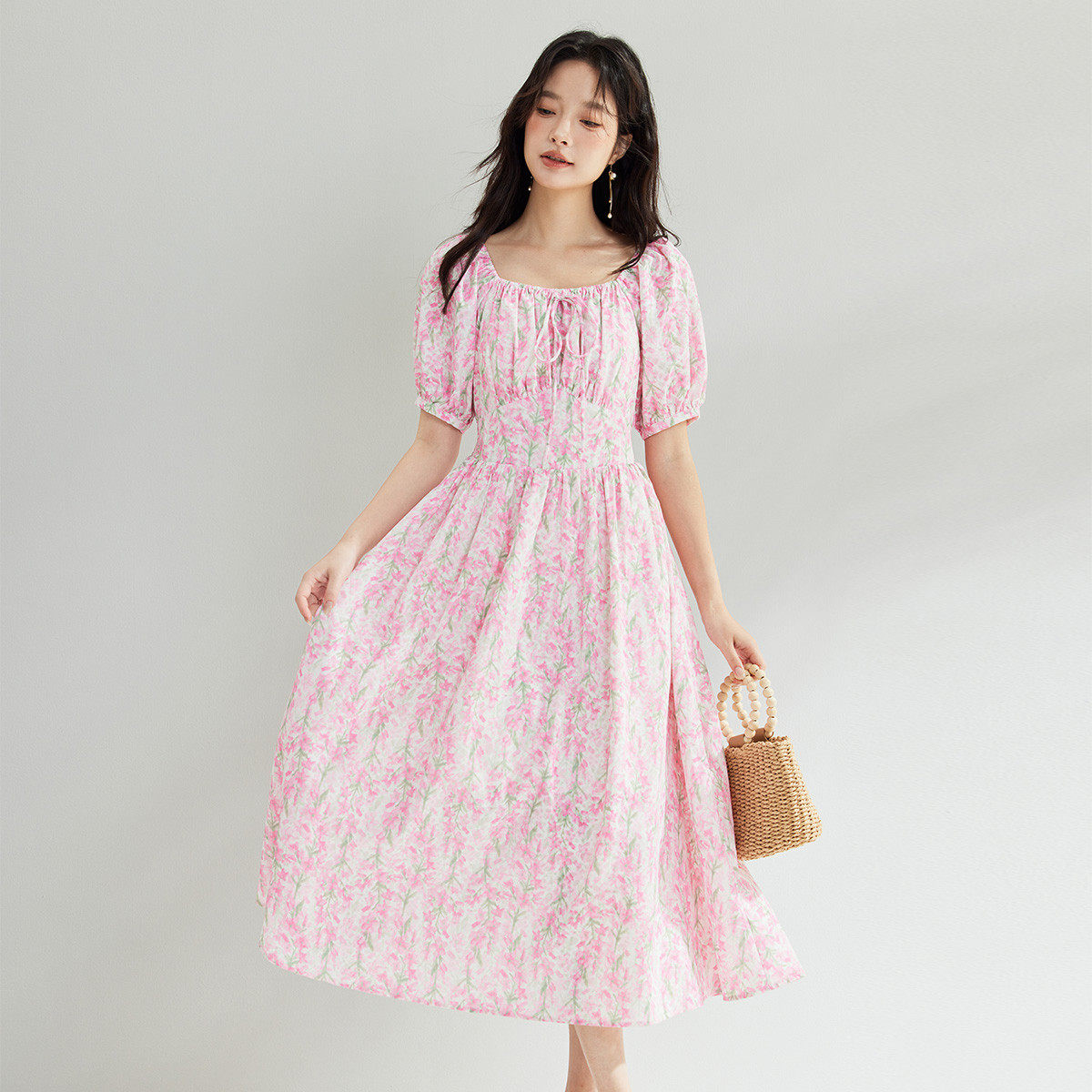 茵曼2026夏季新款碎花雪纺连衣裙女特别独特漂亮掐腰显瘦巨好看的