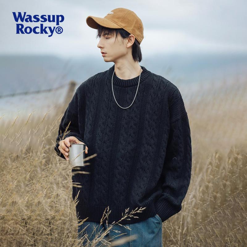 WASSUP ROCKY日系复古麻花毛衣男士2025秋冬季情侣圆领针织衫外套