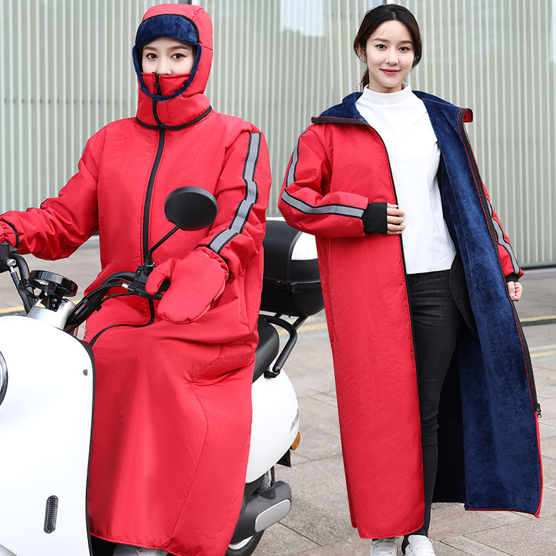 新款女骑电瓶车摩托车防寒服电动车挡风被冬季加绒加厚防水男风衣