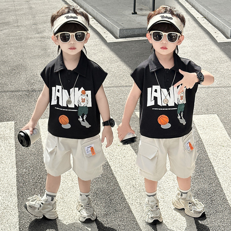 男童夏季背心套装2025新款韩版儿童夏装无袖薄款痞帅潮酷男孩衣服