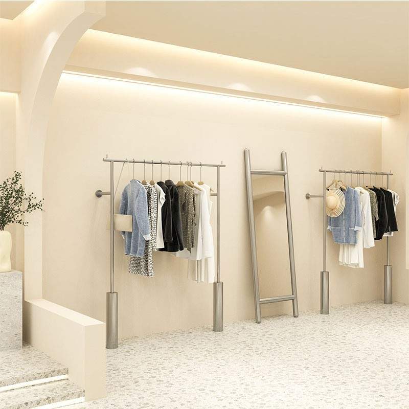 服装店展示架陈列道具女装店货架展示架上墙不锈钢银色挂衣架落地