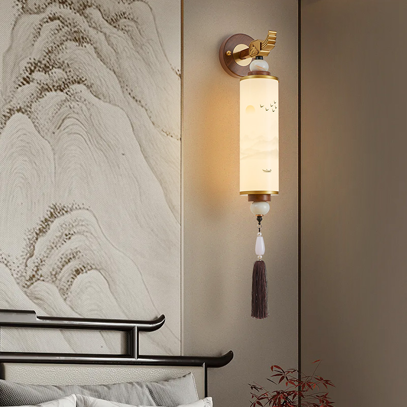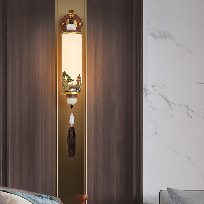 新中式壁灯胡桃木色中国风客厅背景墙灯2025新款过道卧室床头灯