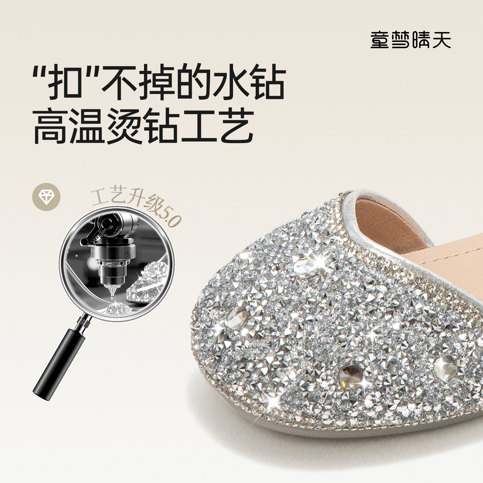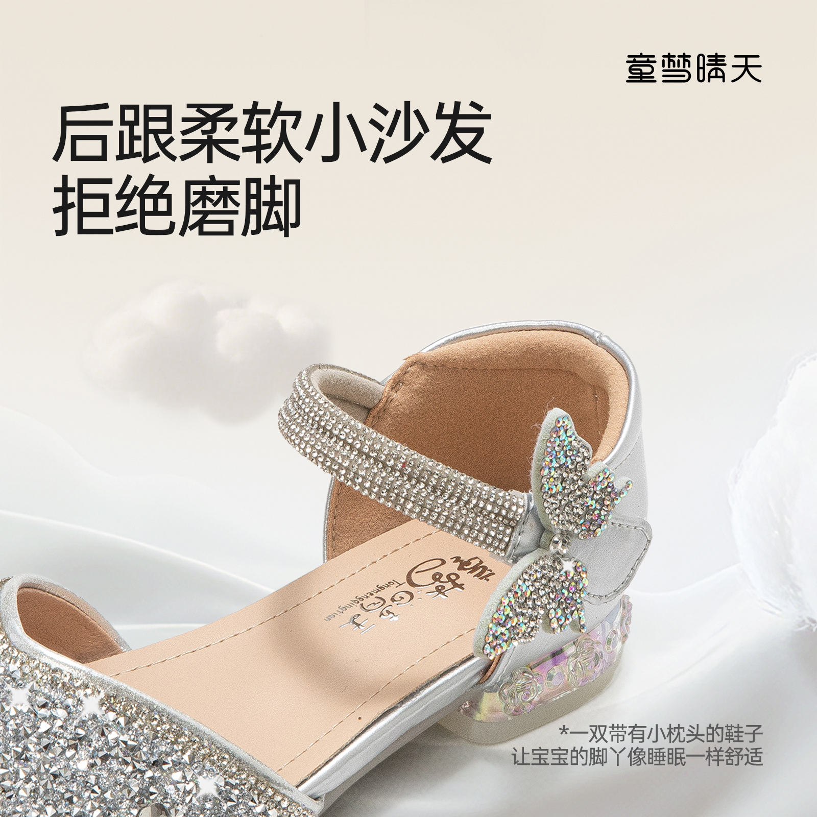 童梦晴天女童公主凉鞋2025新款儿童高跟鞋春夏水晶鞋女宝皮鞋软底