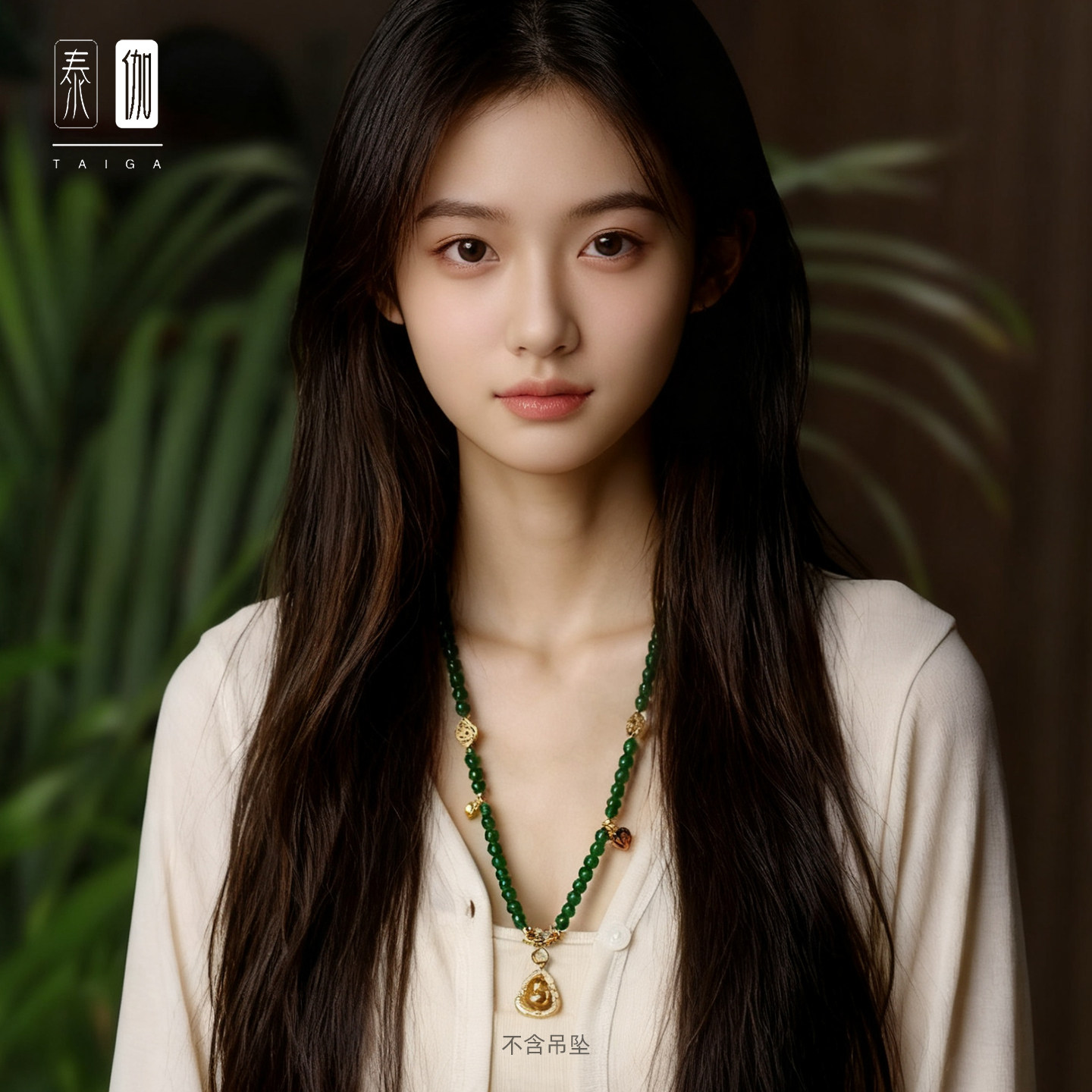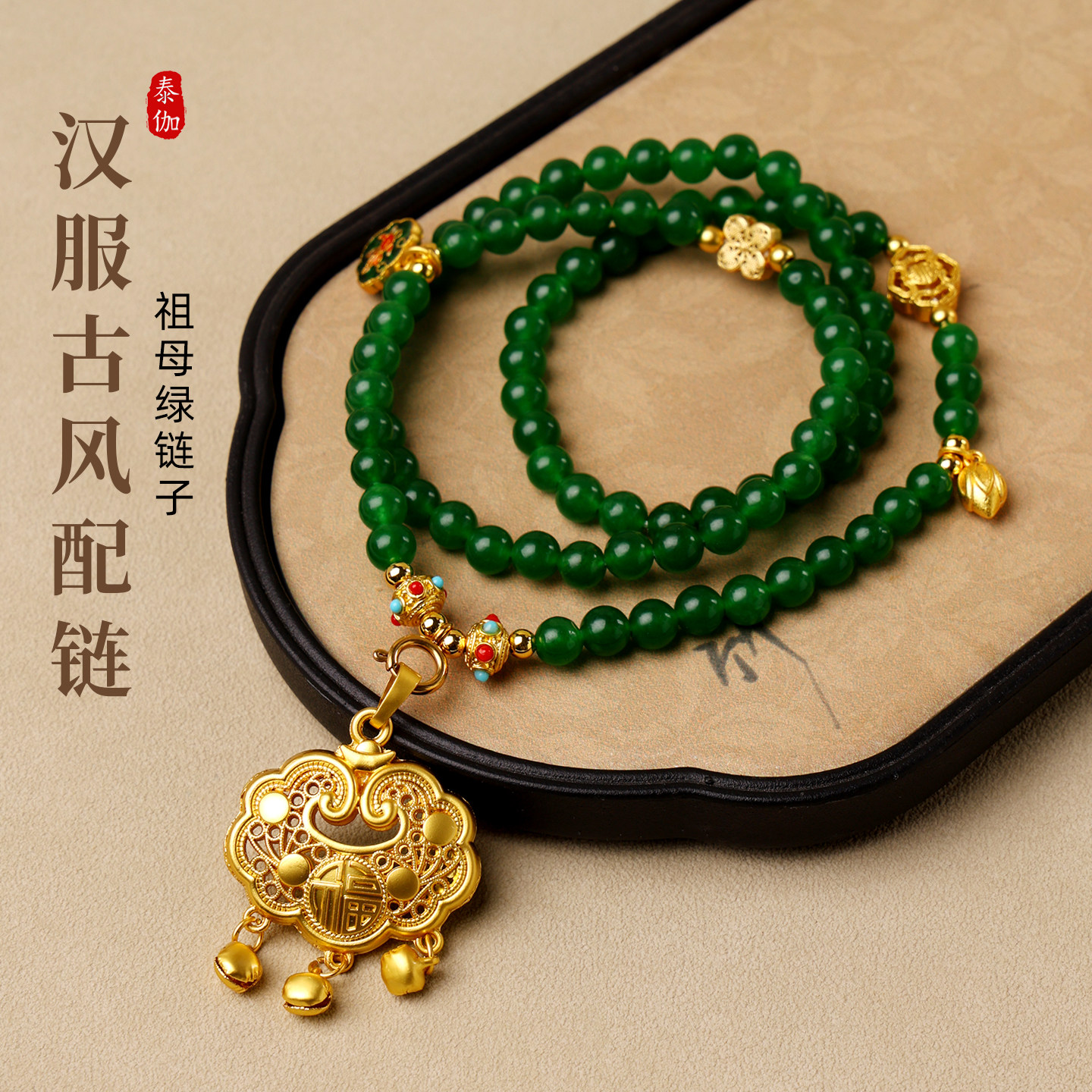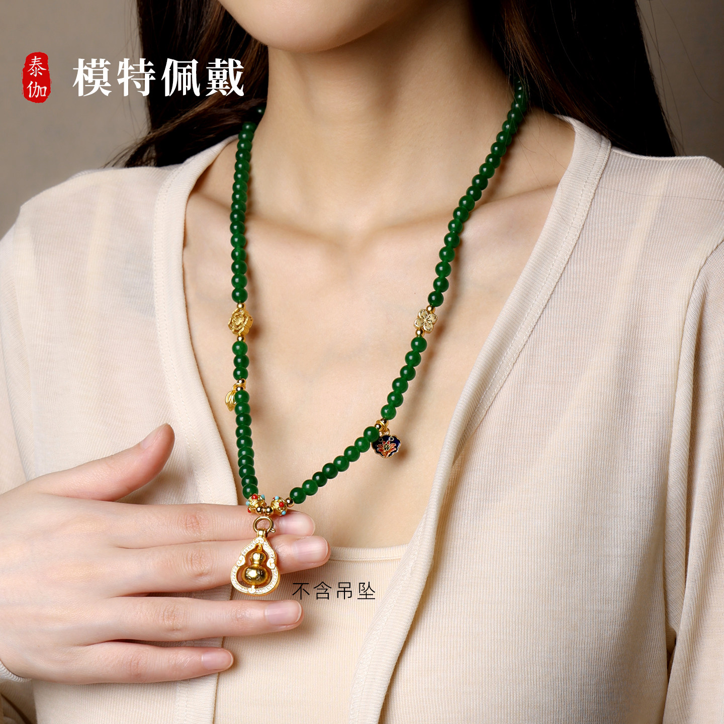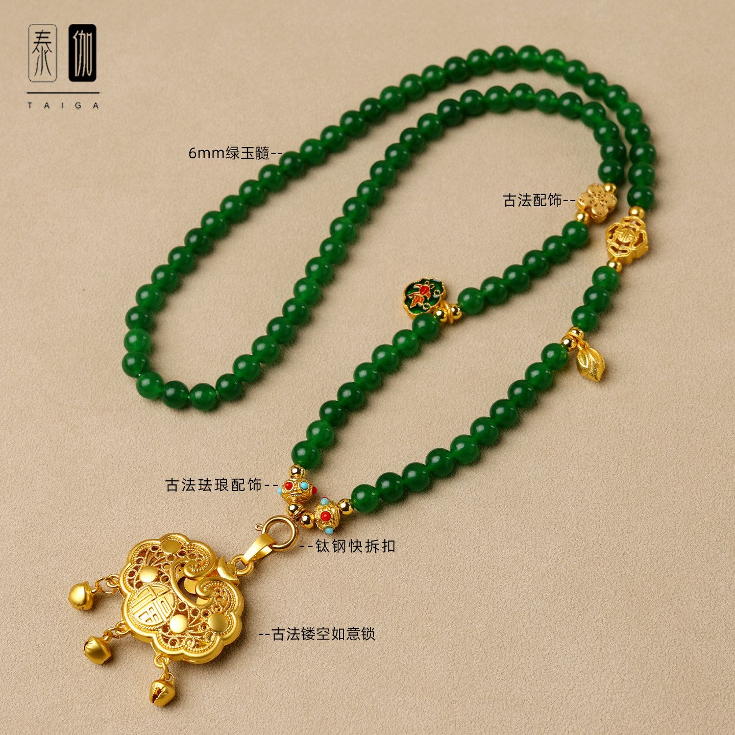 八宝罗盘黄金吊坠挂绳项链祖母绿玉髓翡翠玉石配饰珠链新中式