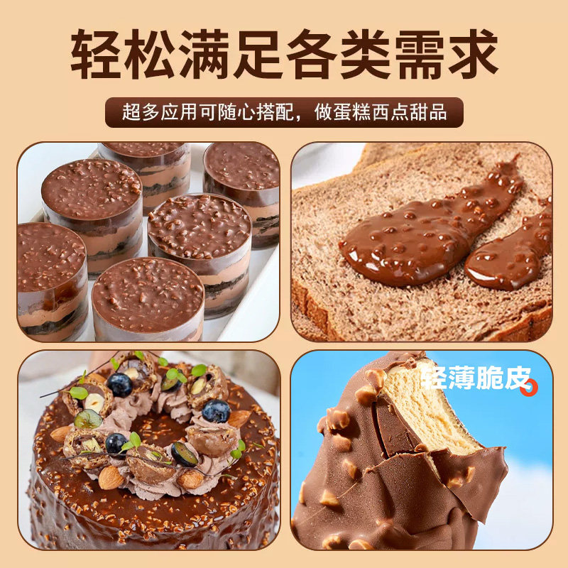 冰淇淋脆皮巧克力酱花生碎梦龙榛子薄脆酱蛋糕夹心馅料雪糕淋面酱