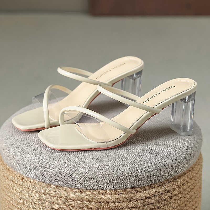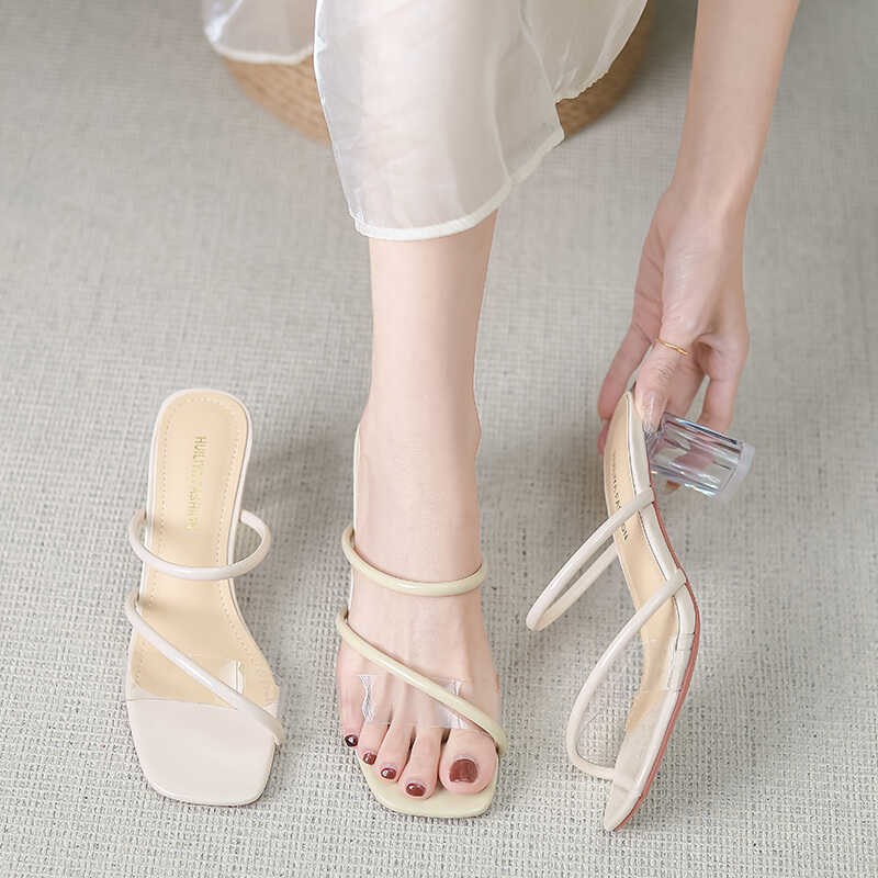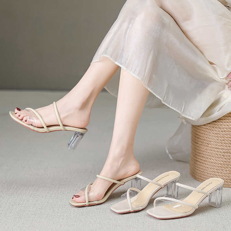 配裙子仙女风粗跟透明外穿凉拖鞋女夏季时尚百搭新款露趾高跟凉鞋