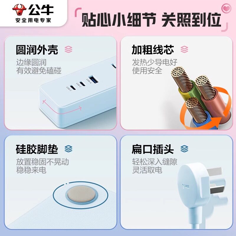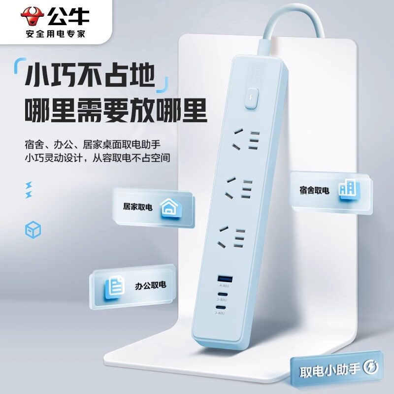 公牛插座办公家用插排插线板usb多孔拖线板接线板插板电源延长线