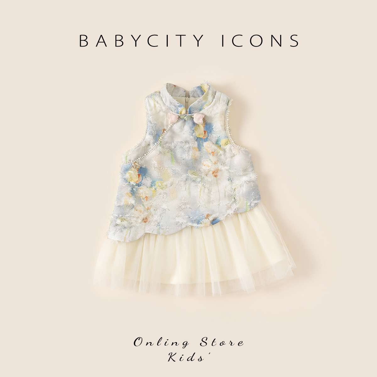 贝贝城可爱花边领无袖连衣裙