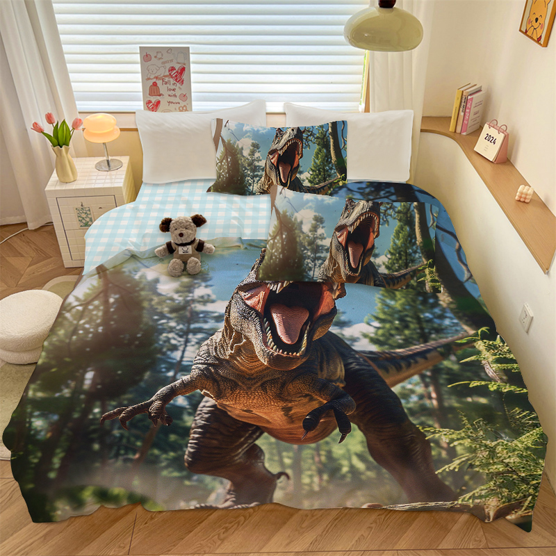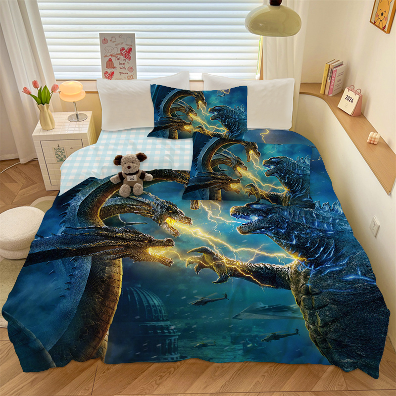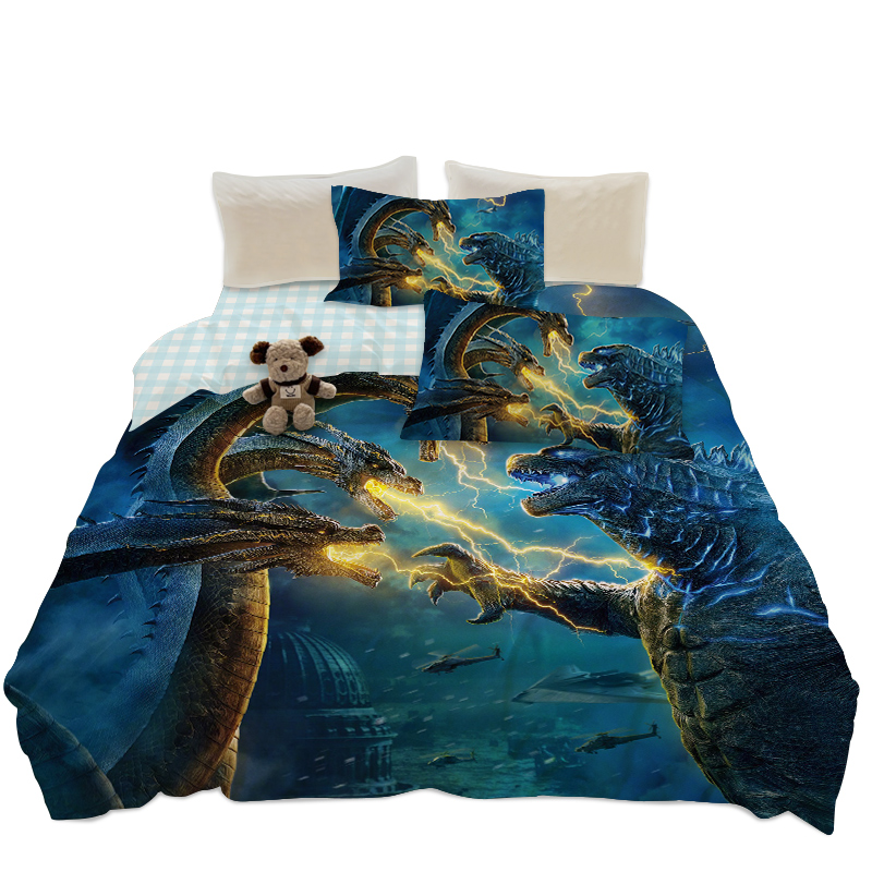 定制全棉卡通哥斯拉四件套金刚床单被套儿童纯棉恐龙怪兽周边床品