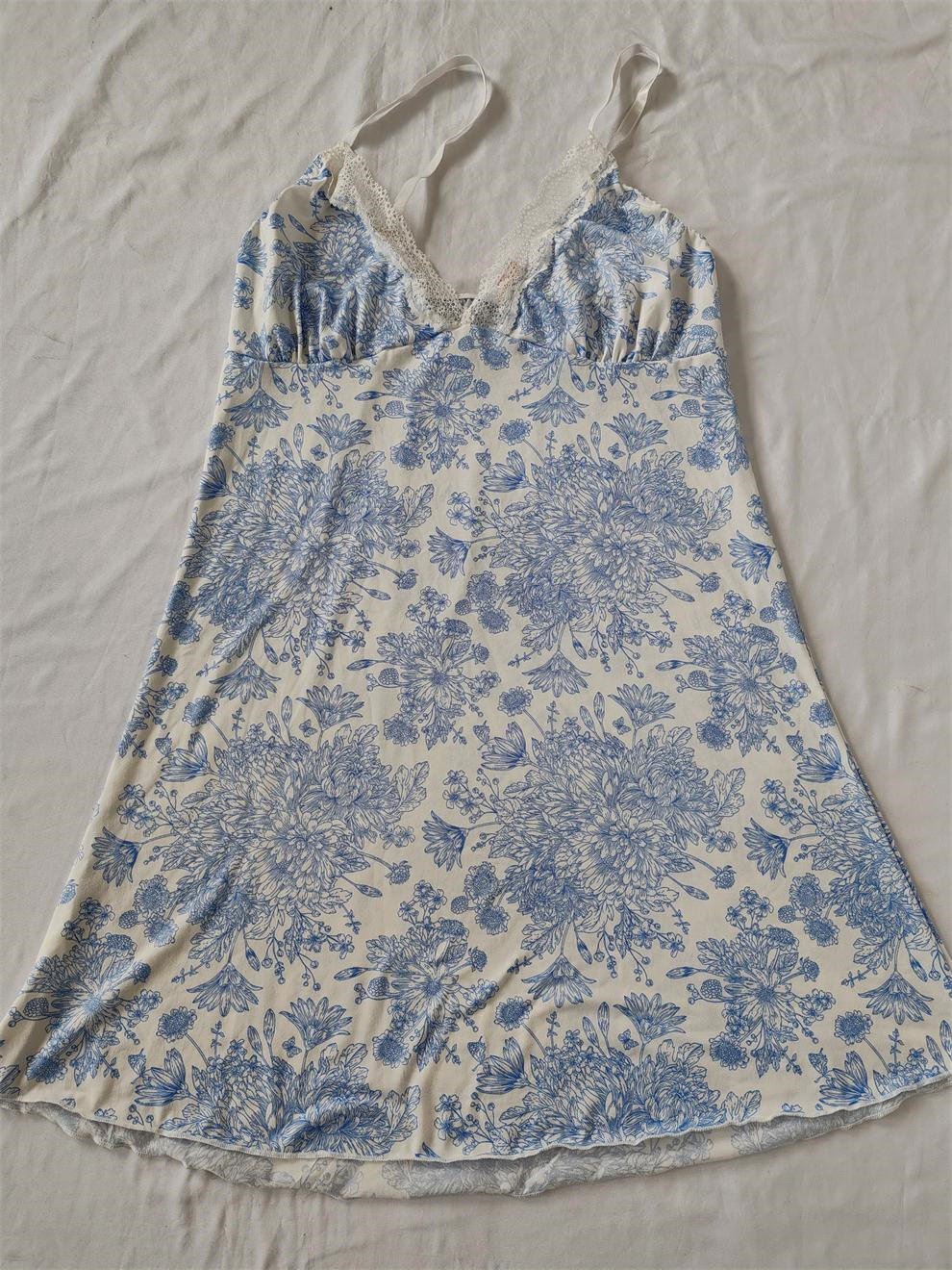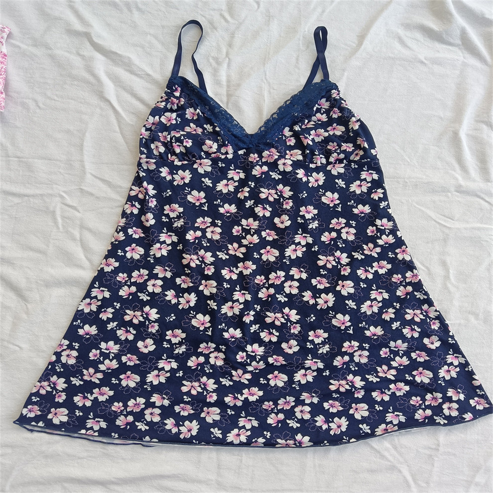 D24-35女式多色印花出口欧美吊带裙睡裙舒适长款深V睡衣睡袍性感