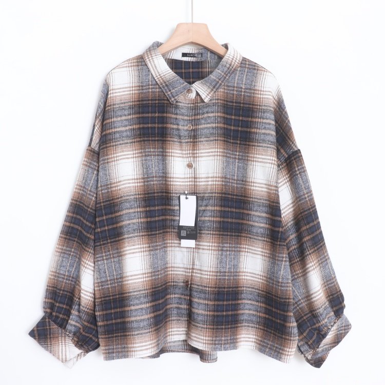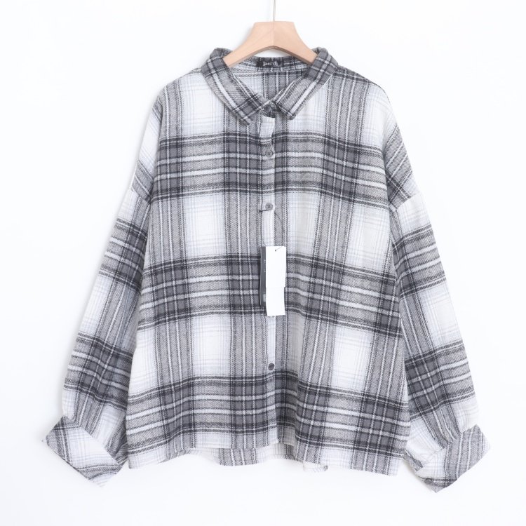D09089日单新款单排扣宽松好搭配女简洁通勤休闲磨毛格子长袖衬衫