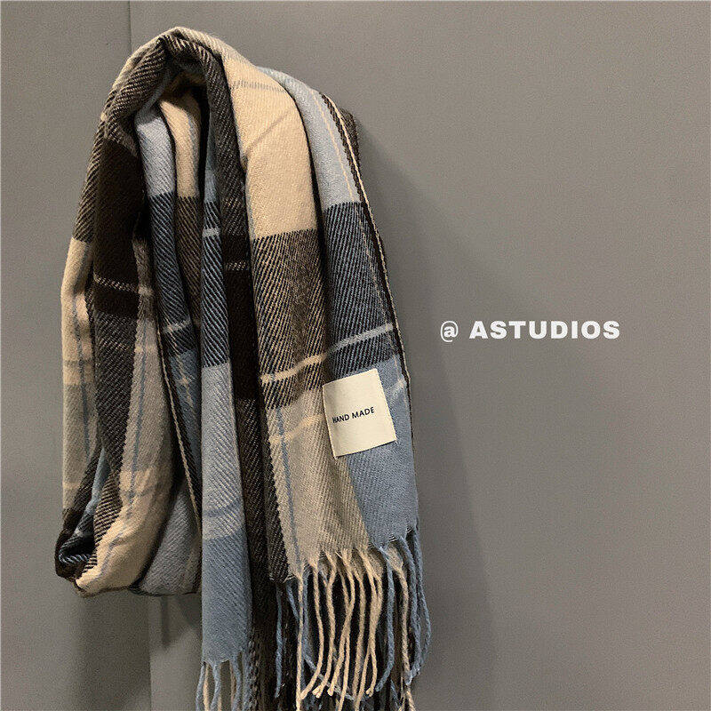 精品礼盒装男士围巾冬季保暖男女学生格子情侣围脖女披肩生日礼物