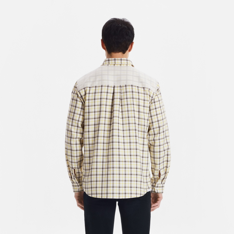 AIGLE艾高春季休闲舒适格纹纯色两面穿长袖格子衬衫法式上衣男士