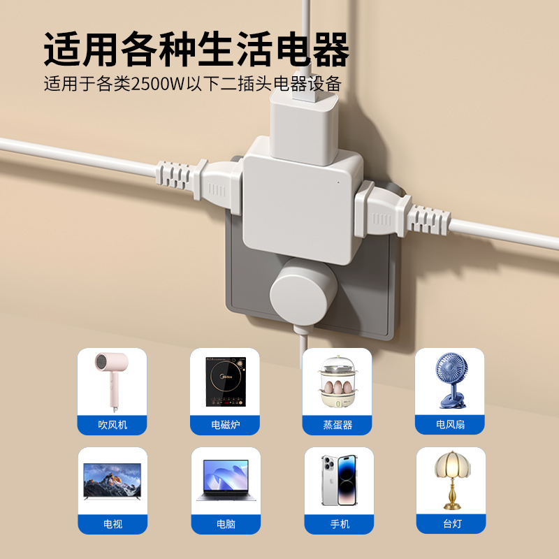 超薄转换器两脚可180°旋转插头无线扩展插座USB沙发缝隙插排面板