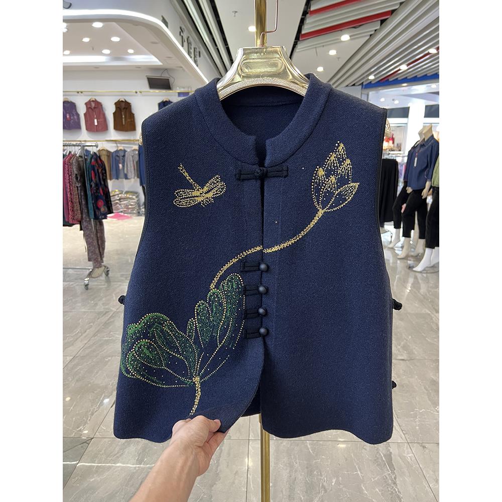 中式妈妈装绣花无袖针织马甲秋季新款洋气高贵中老年背心外套上衣
