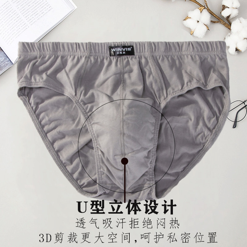 纯棉男士三角内裤全棉舒适中腰底裤头宽松透气青中年男抗菌短裤衩