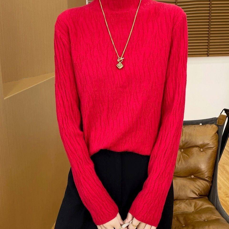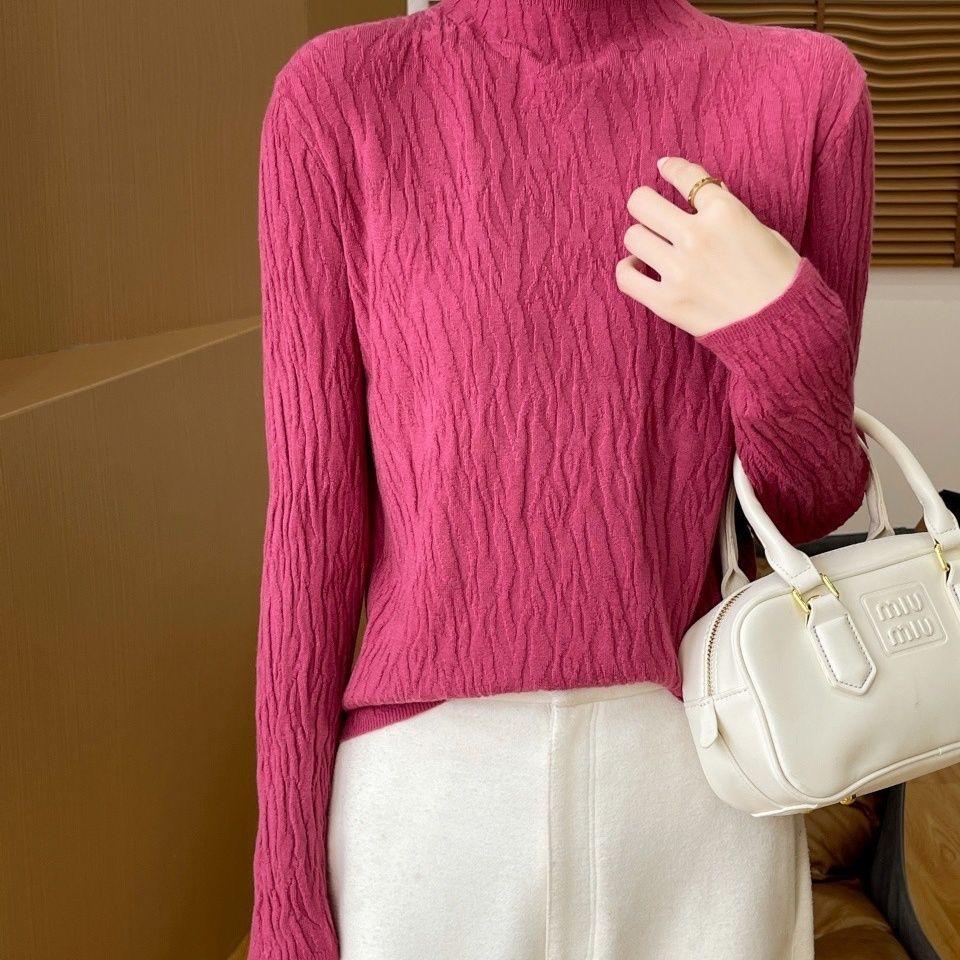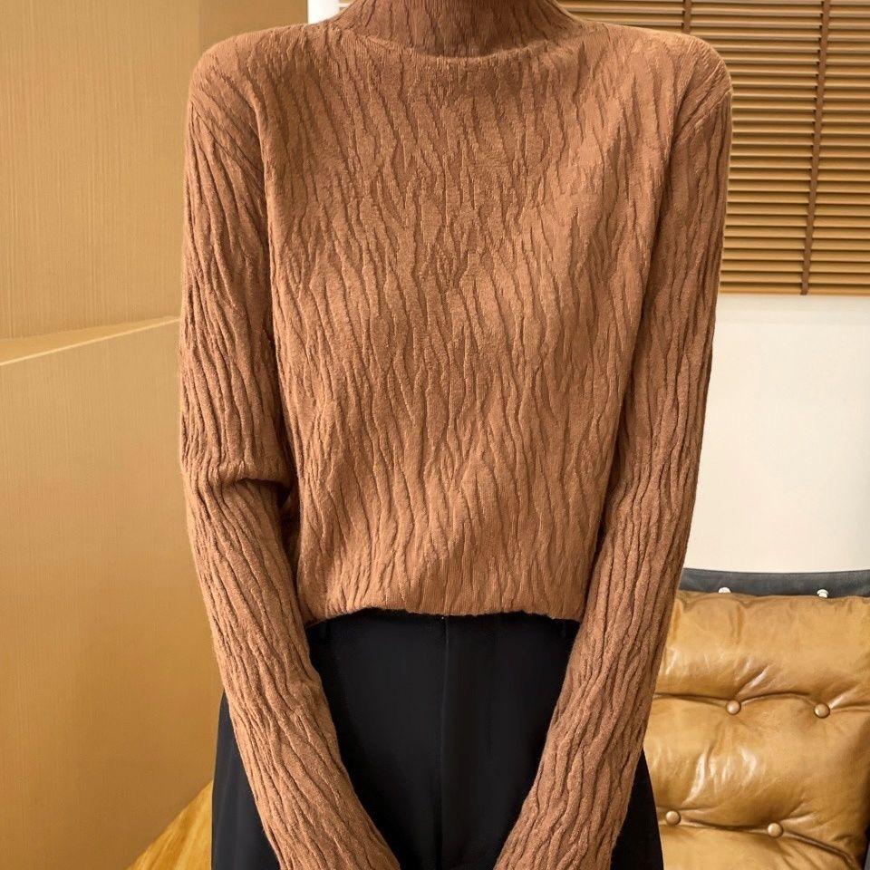 欧货慵懒风半高领毛衣女秋冬内搭洋气紧身针织打底衫长袖上衣T恤
