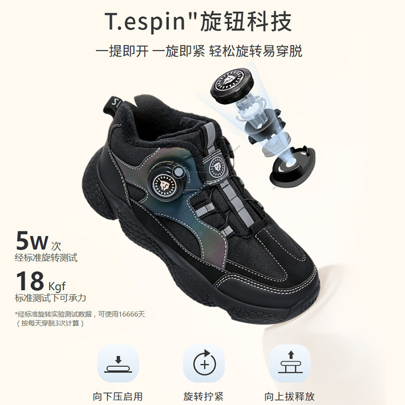 泰兰尼斯kids男童运动鞋冬季新款高帮跑步鞋保暖加绒大童旋钮棉鞋