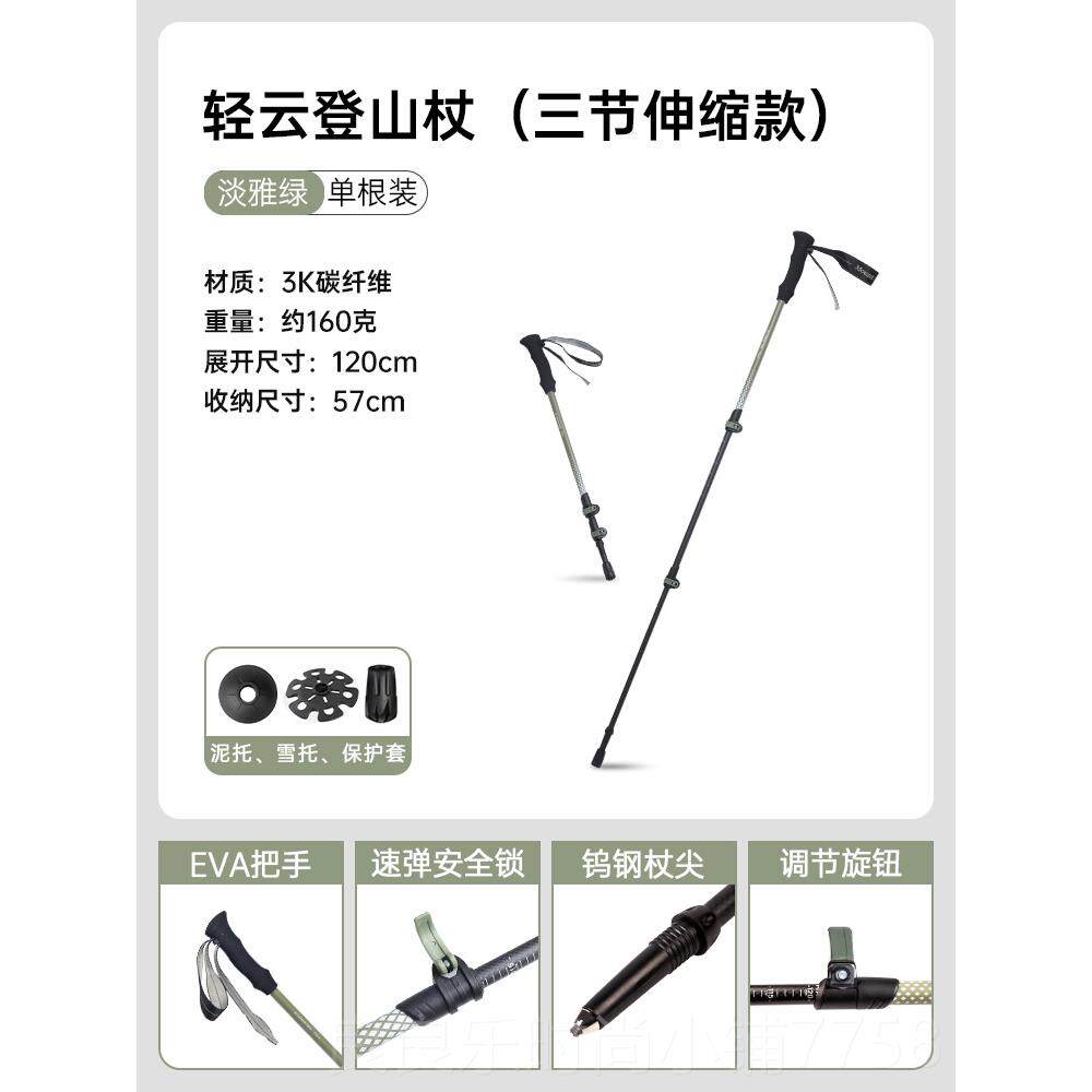 新款携景 碳纤维夜光登山锁杖悠户外折叠外直柄爬山防身便碳素登